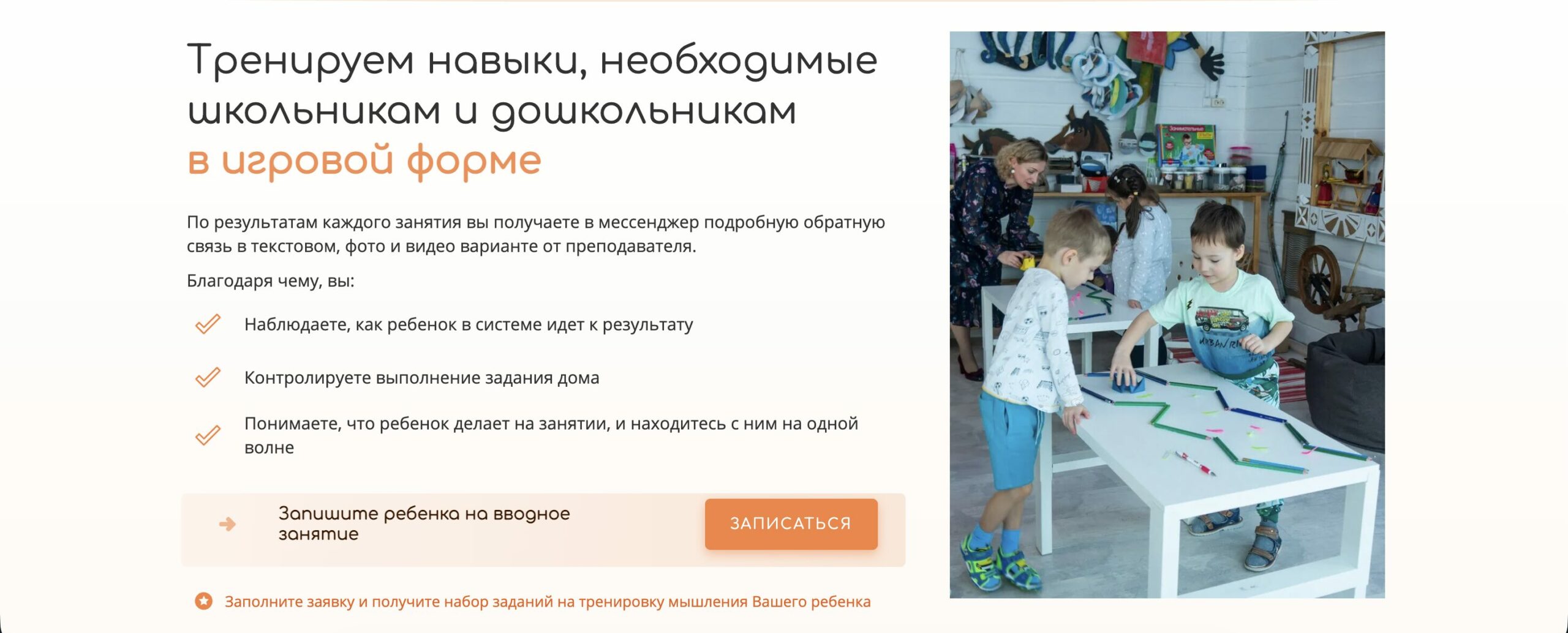 Для малышей и дошкольников разработаны программы по развитию речи, математике, английскому языку и подготовке к школе. Дети учатся правильно держать ручку, тренируют внимание и память, расширяют словарный запас и осваивают счет. Такой старт снижает стресс перед первым классом и формирует прочную базу знаний.