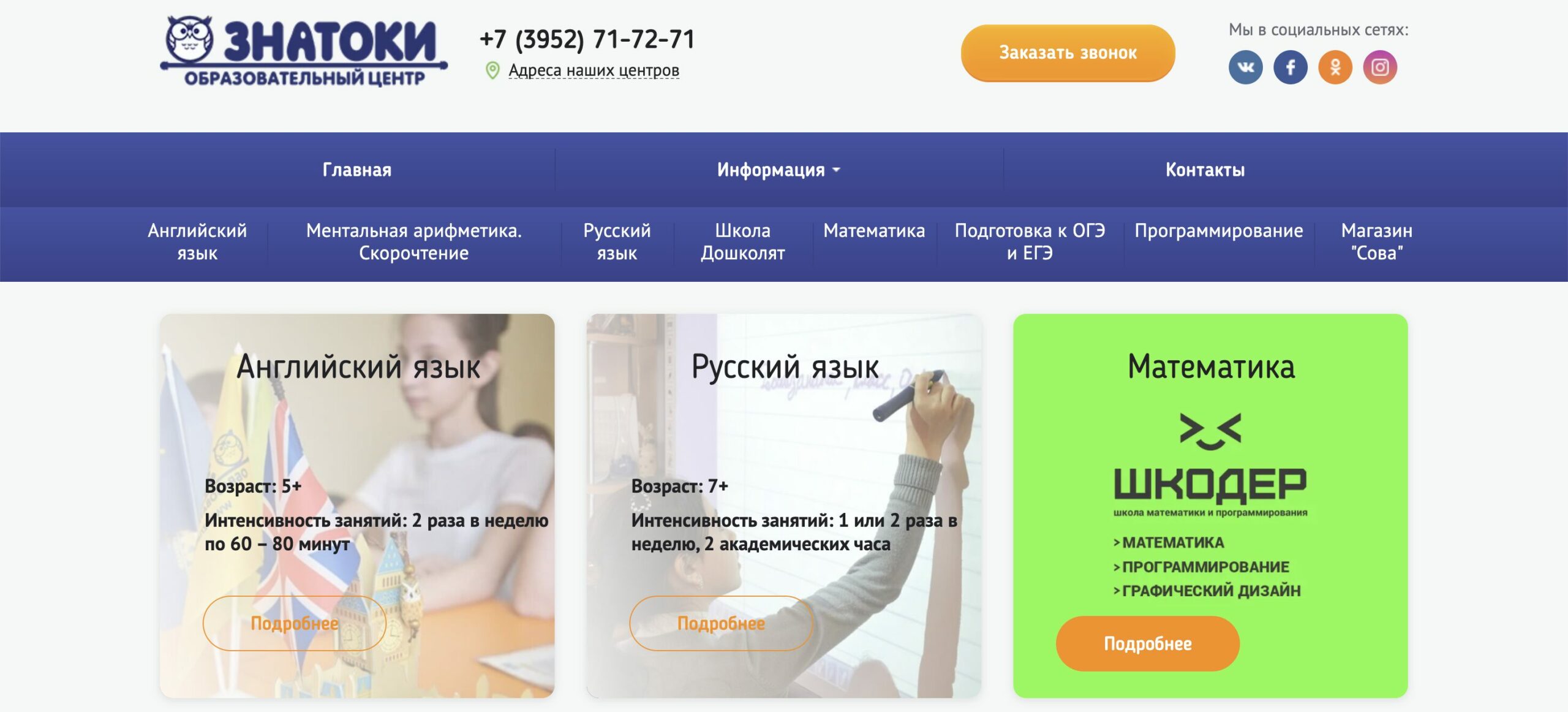 Центр «Знатоки» работает в Иркутске с 1999 года и помогает детям уверенно осваивать школьные предметы. Преподаватели ведут курсы по русскому языку, математике, информатике и английскому. Ученики готовятся к ВПР, ОГЭ и ЕГЭ, разбирают сложные темы и учатся применять знания на практике.