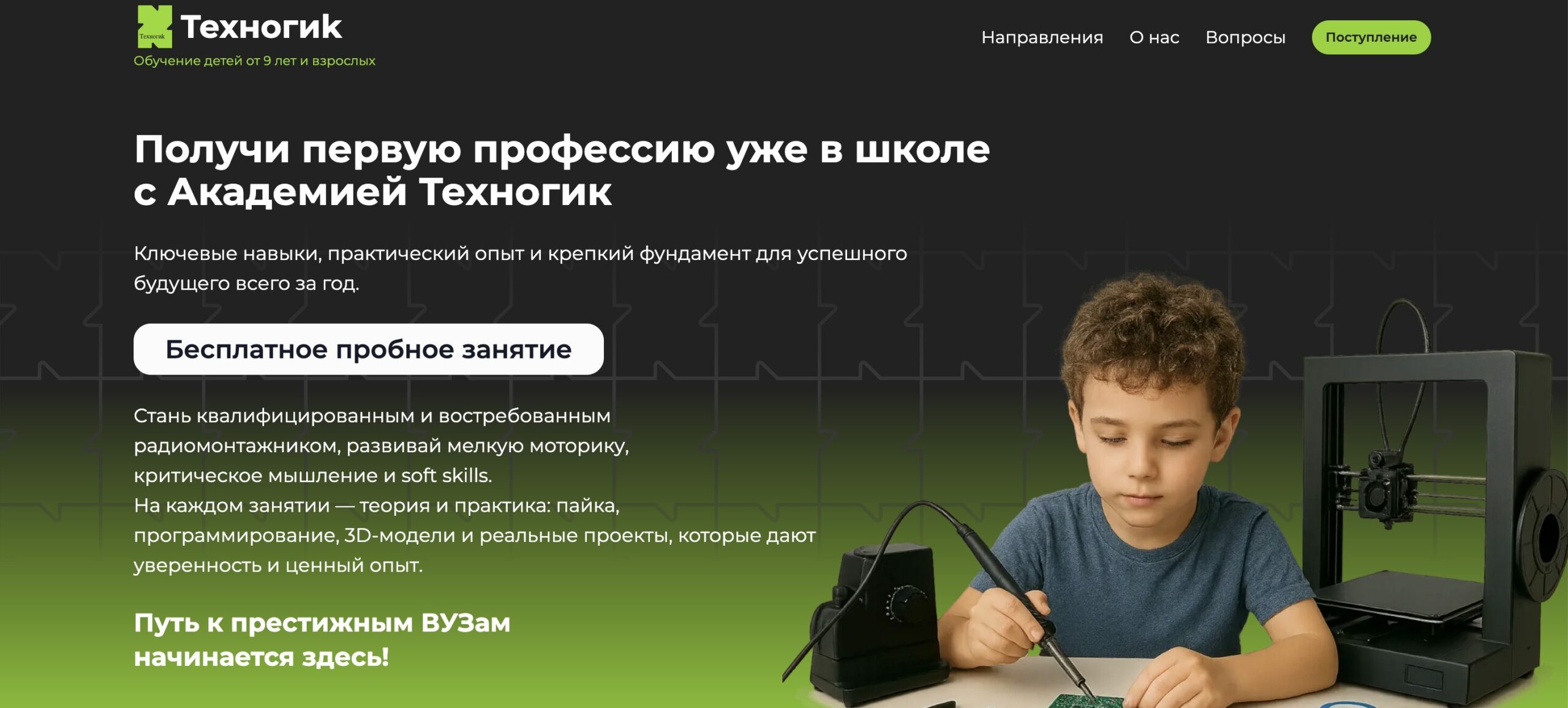 Эта школа не обучает программированию и робототехнике, но заслуживает место в рейтинге, потому что проводит курсы по электронике и радиомонтажу. Это смежное направление, которое будет хорошим дополнением для ребят, которые уже занимаются робототехникой и интересуются инженерией. Здесь учат сборке и отладке устройств, пайке, монтажу, экспериментам, работе с платами, диагностике и проектированию устройств — новый проект можно создать почти каждую неделю. Но особое внимание уделяется развитию мягких навыков ребенка: умению работать в команде, выражать свои мысли и идеи, представлять свои изобретения.