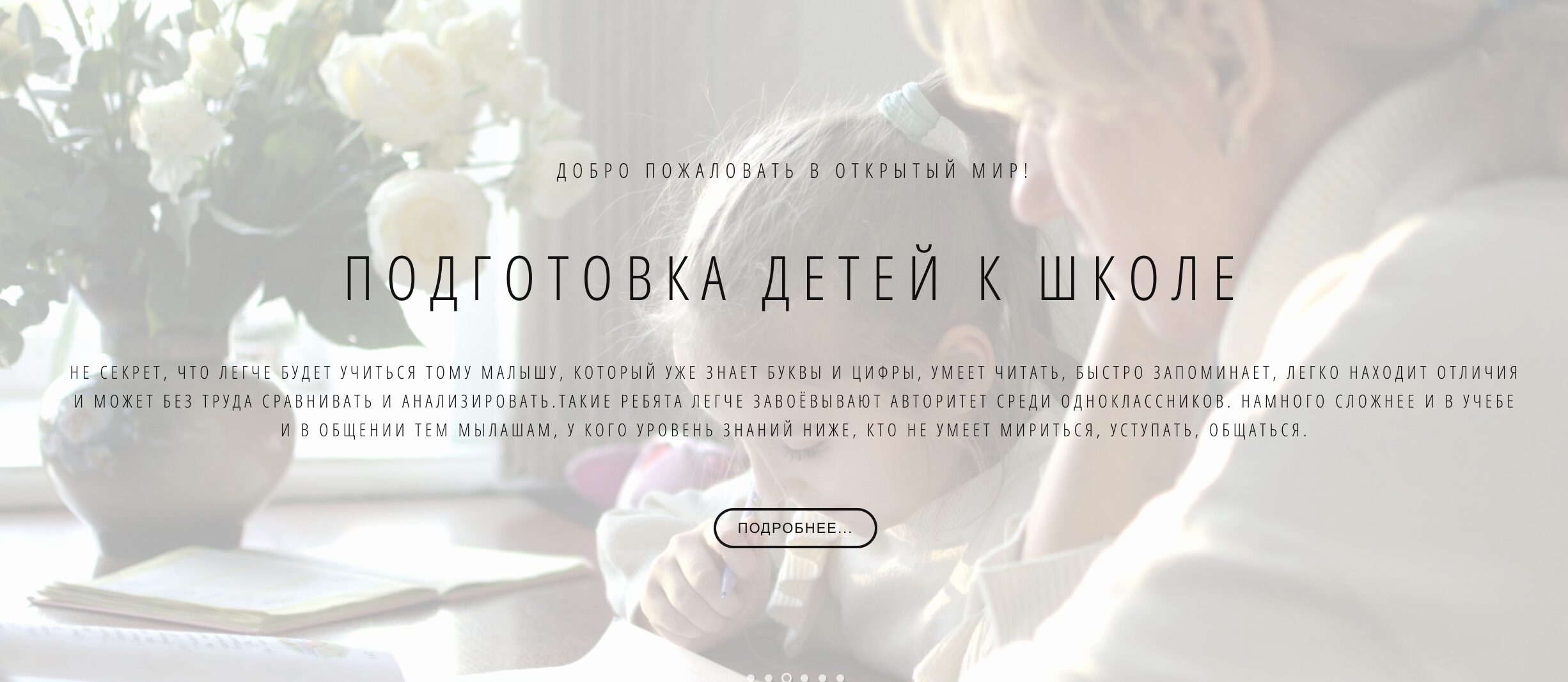 Подготовка к школе, творческие мастер-классы, шахматы, робототехника, английский язык — в «Открытом мире» есть много полезных занятий для детей. В штате — более 30 высококвалифицированных педагогов, которые готовы заниматься не только с самыми маленькими воспитанниками, но и с их родителями.