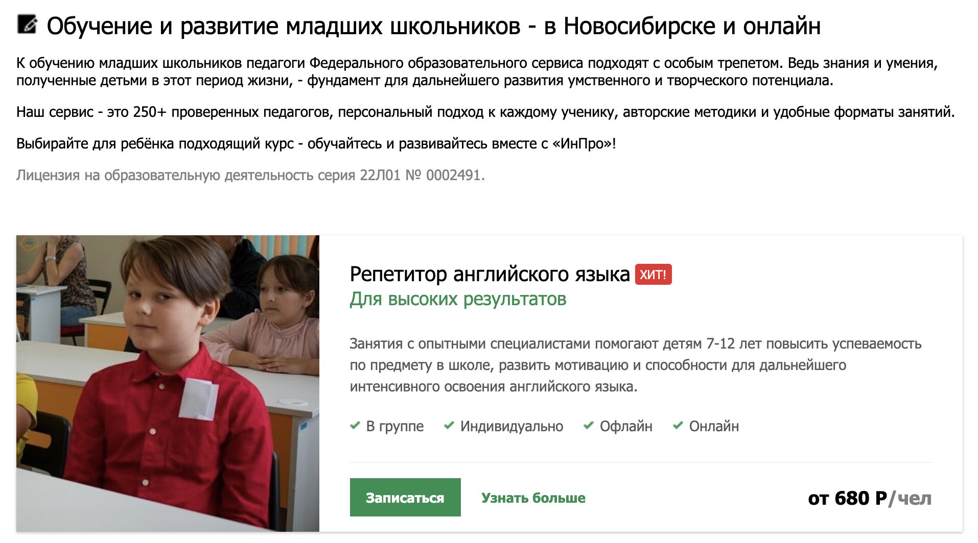 Педагоги центра «ИнПро» помогают детям поверить в свои силы. Используя индивидуальный подход, они передают необходимые знания и навыки для успешной учебы, в короткое время готовят к экзаменам, а самым маленьким прививают любовь к учебе и самостоятельность в выполнении заданий.