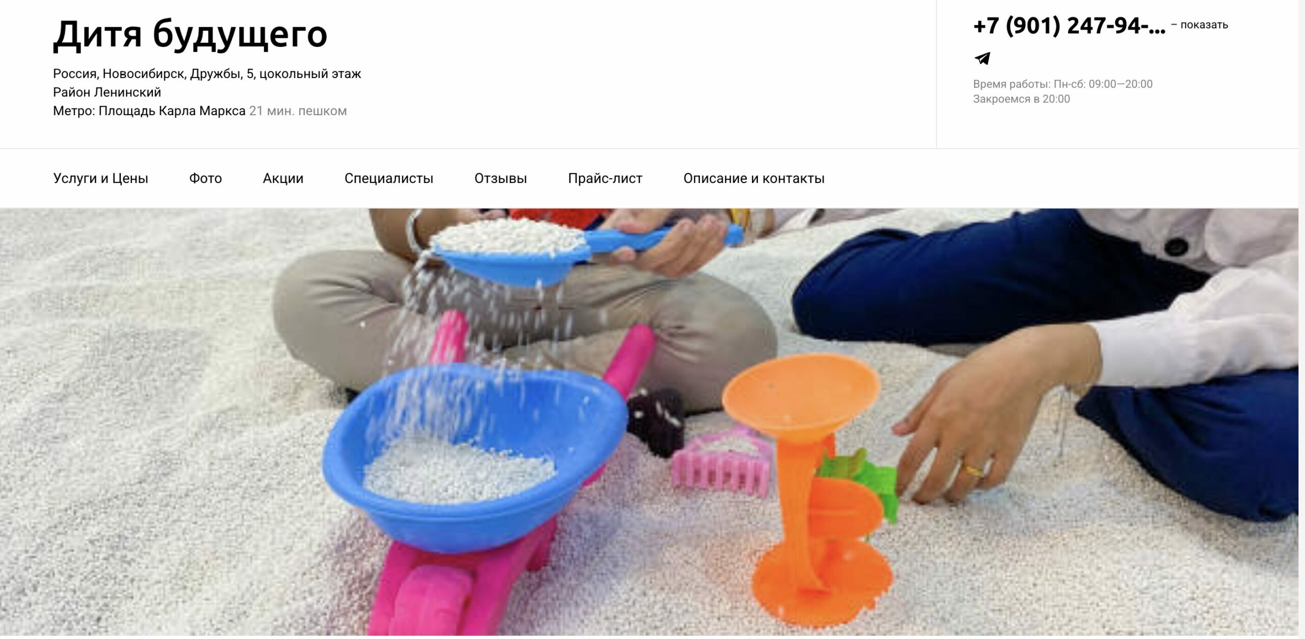 В центре «Дитя будущего» ребята делают первые шаги в мир знаний, учатся общаться и дружить, проявляют свои таланты. Дети занимаются в уютной атмосфере творчества и игры. Программы разработаны таким образом, чтобы ребята получали всестороннее развитие, занимаясь с удовольствием и большим интересом. Стоимость занятия — от 900 рублей.