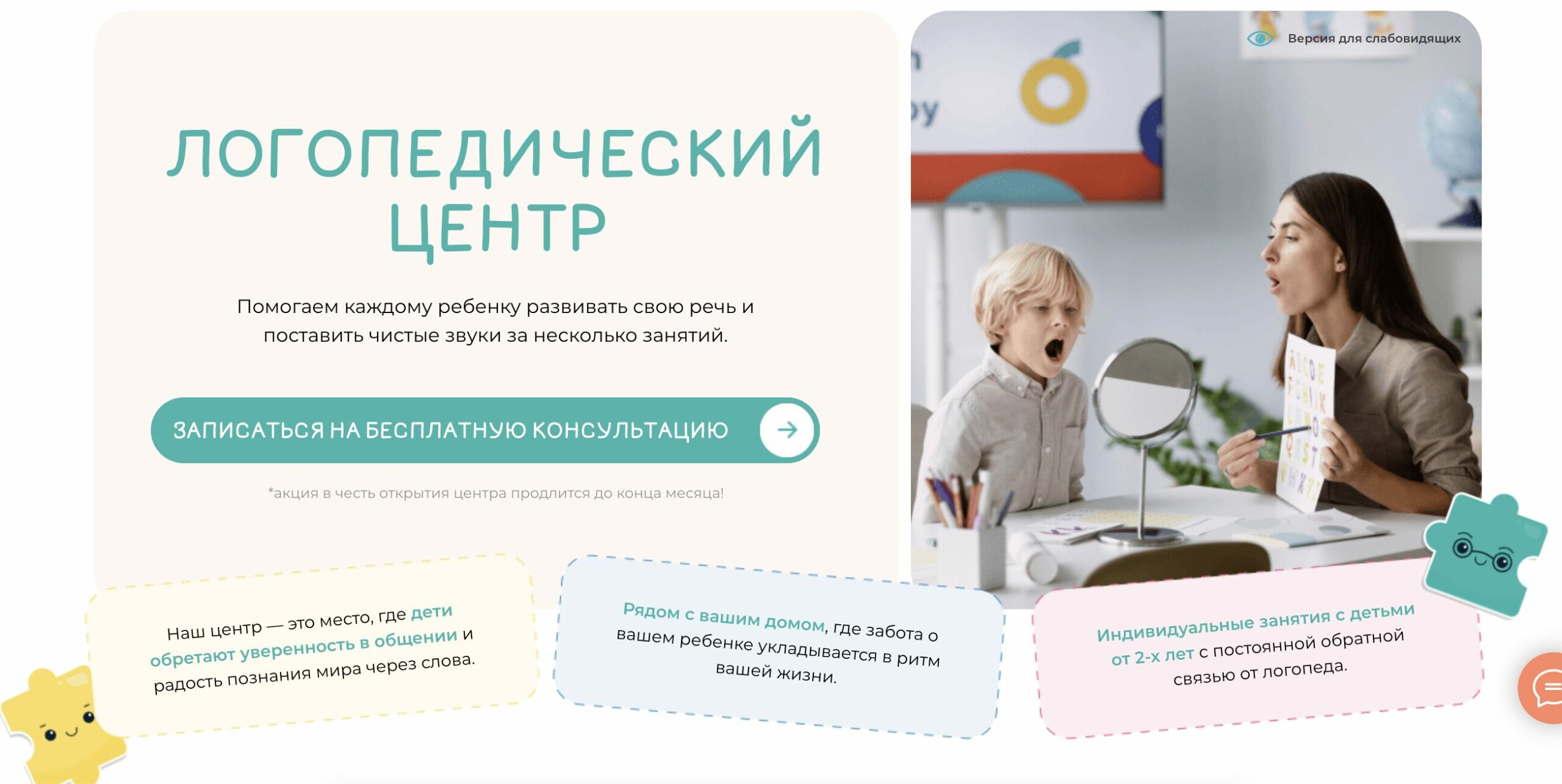 Здесь опытнейшие специалисты с педагогическим образованием подходят к развитию своих подопечных индивидуально, с учётом возрастных норм и личностных особенностей.