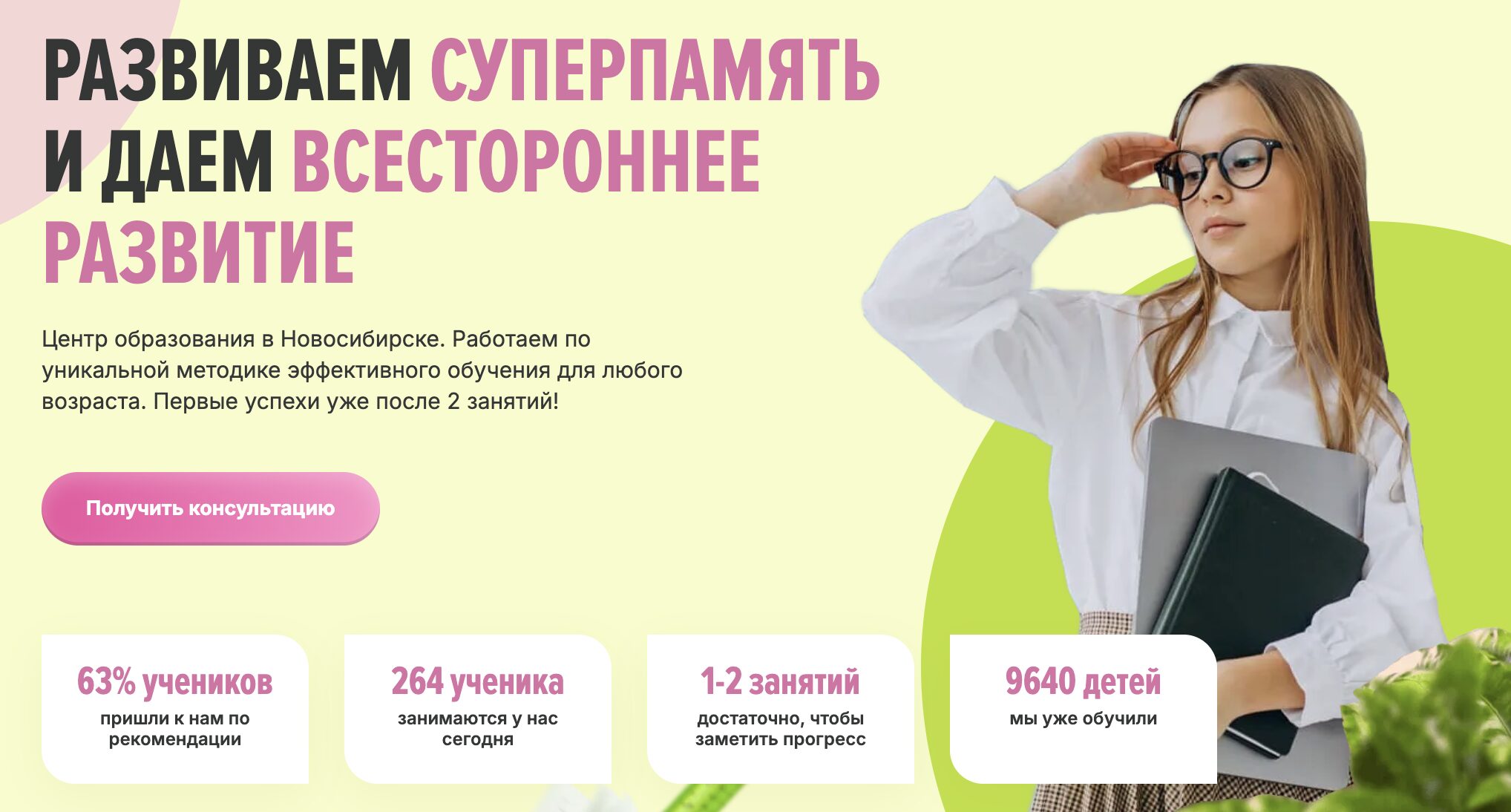 В школе «Дивика» открыты курсы для детей от 5 до 17 лет. Эффективность курсов отмечают 95% родителей. У кого-то улучшились навыки счета, кто-то стал увереннее себя чувствовать в социуме — преимуществ, которые дают программы школы «Дивика», действительно много. Благодаря опытным педагогам и авторским программам дети начинают учиться легко и с удовольствием — прогресс заметен уже после второго занятия. Благодаря занятиях ребенок избавится от таких проблем, как медленное чтение, непонимание прочитанного, невнимательность, страх идти в школу, слабая концентрация внимания и других. Школа скорочтения помогает детям полюбить учебу. Стоимость занятий — от 625 рублей в час.