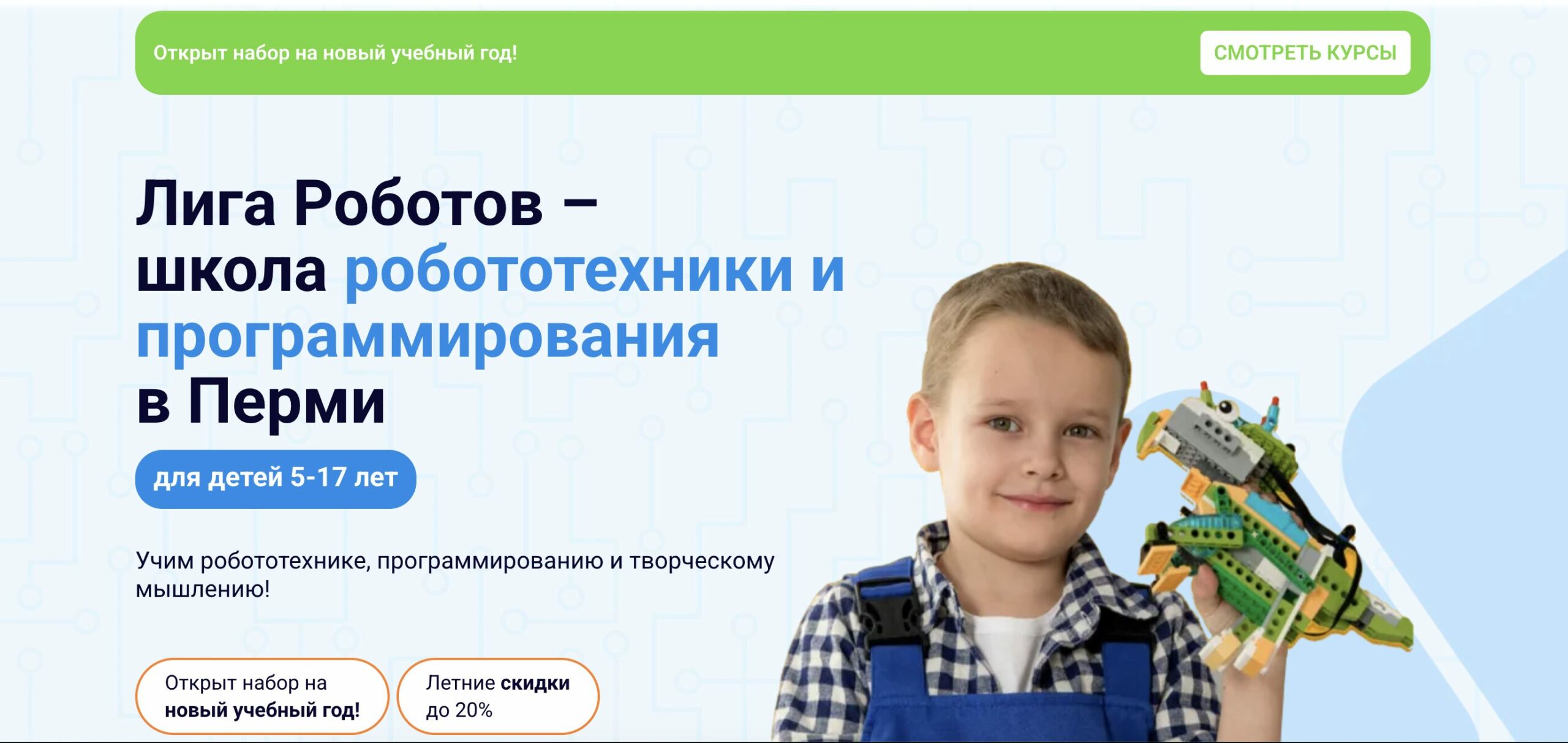 Всех желающих научиться робототехнике, программированию и творческому мышлению ждут в школе «Лига Роботов». В Перми открыто пять филиалов, вы можете выбрать наиболее удобное по расположению отделение.