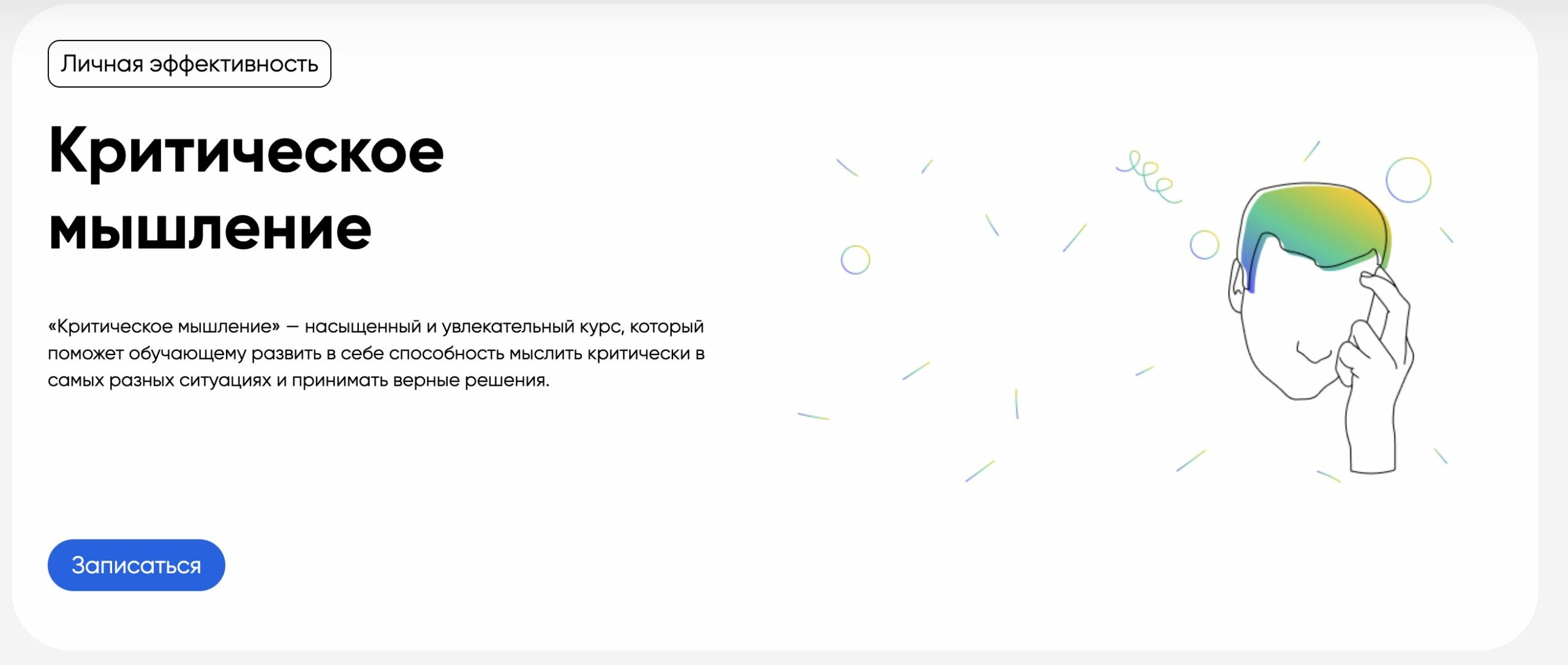 Критическое мышление — это навык, который мы развиваем на протяжении всей жизни. Если не уделять внимания этой задаче, навык останется на стадии зародыша, а если направить усилия в нужное русло, результат изменит жизнь в целом. Развивать критическое мышление можно с помощью тематических книг и статей, но гораздо быстрее и эффективнее это можно сделать на курсах, где вы получите поддержку преподавателей и увидите проблемные места и когнитивные искажения, которые самому заметить крайне сложно. На образовательных онлайн-платформах проводятся курсы по развитию критического мышления, и некоторые из них полностью или частично бесплатные. Приведем несколько примеров.