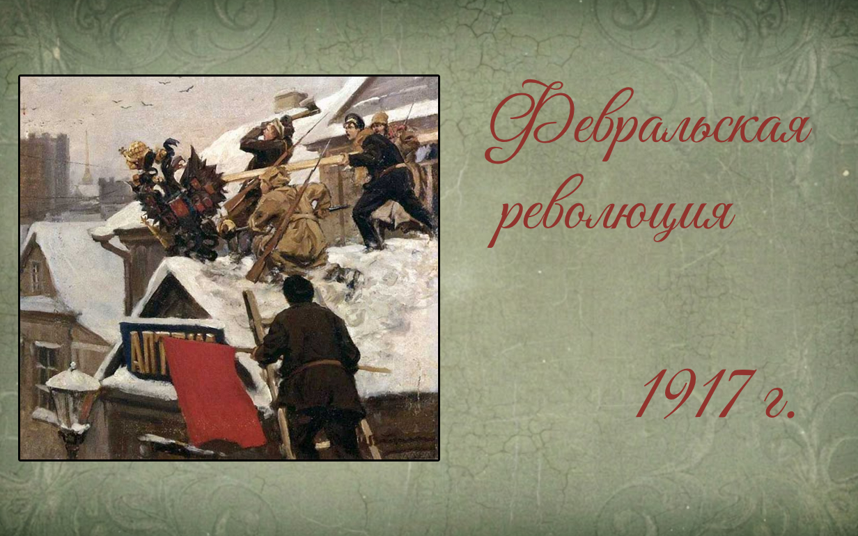 Под Февральской революцией понимается комплекс стихийных и организованных выступлений, приведших к смене государственного строя. Революция началась 23 февраля (по старому стилю) с забастовок, переросших в вооруженное восстание. Основным итогом стало крушение монархии и попытка перехода к демократическому республиканскому устройству под руководством Временного правительства.