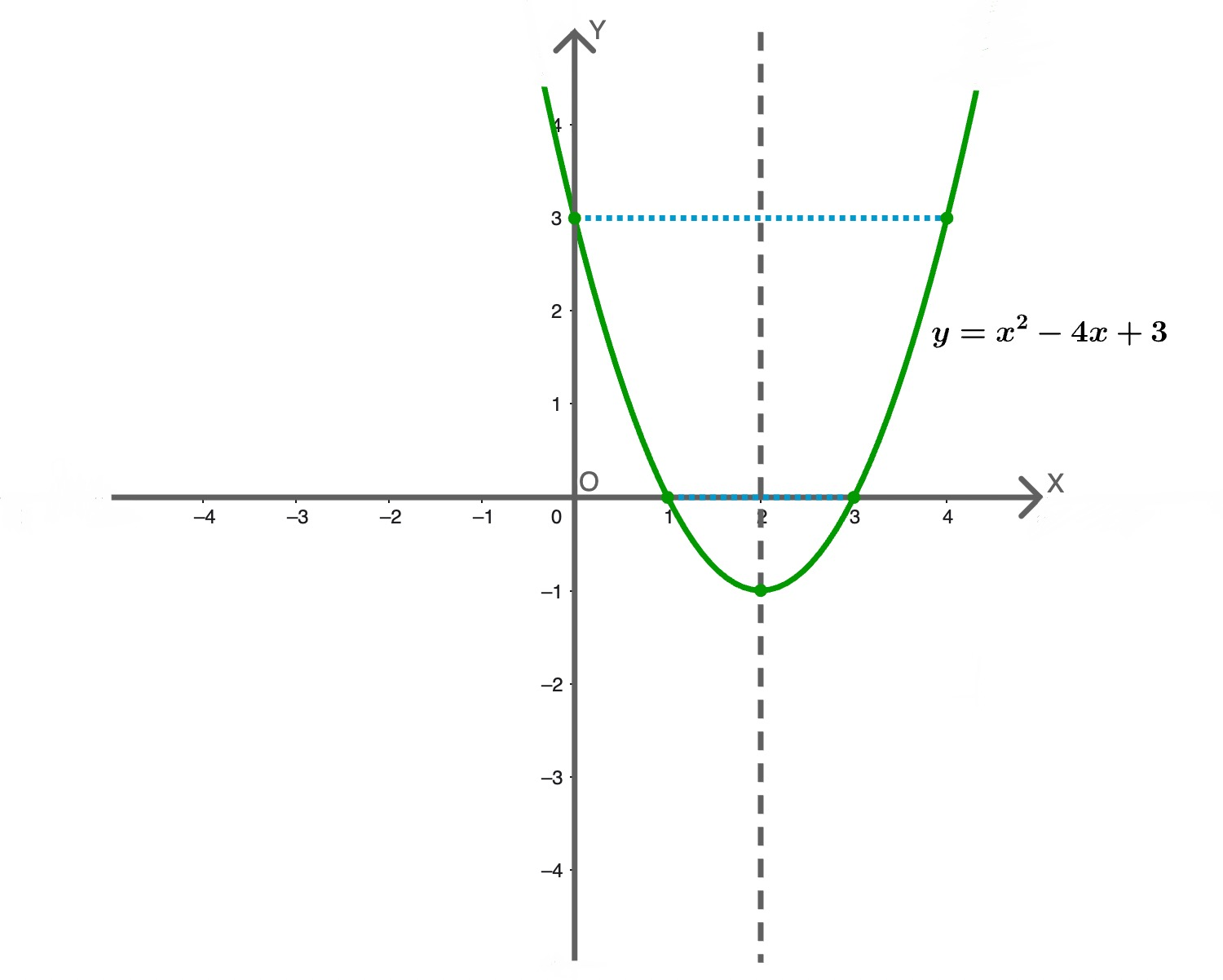 3. Вершина параболы: x0 = -(-4)/(2×1) = 2, y0 = 22 — 4×2 + 3 = -1. Вершина имеет координаты (2; -1).