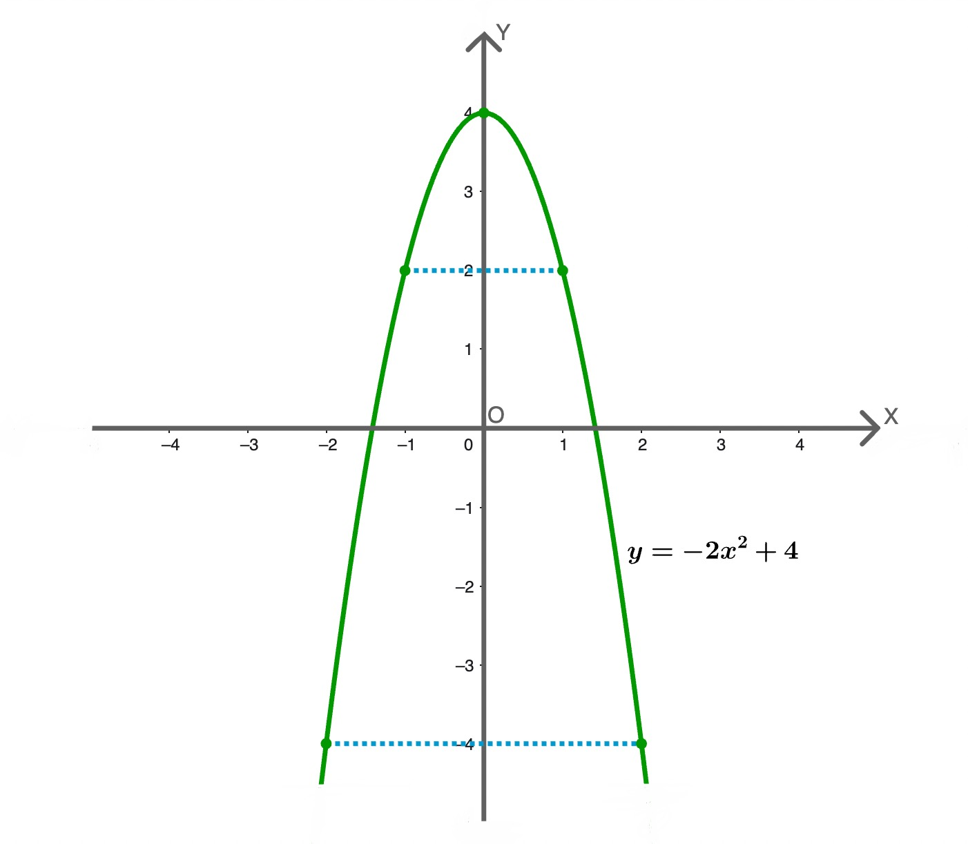 3. Вершина параболы: x0 = 0/(2×(-2)) = 0, y0 = -2×02 + 4 = 4. Вершина имеет координаты (0; 4).