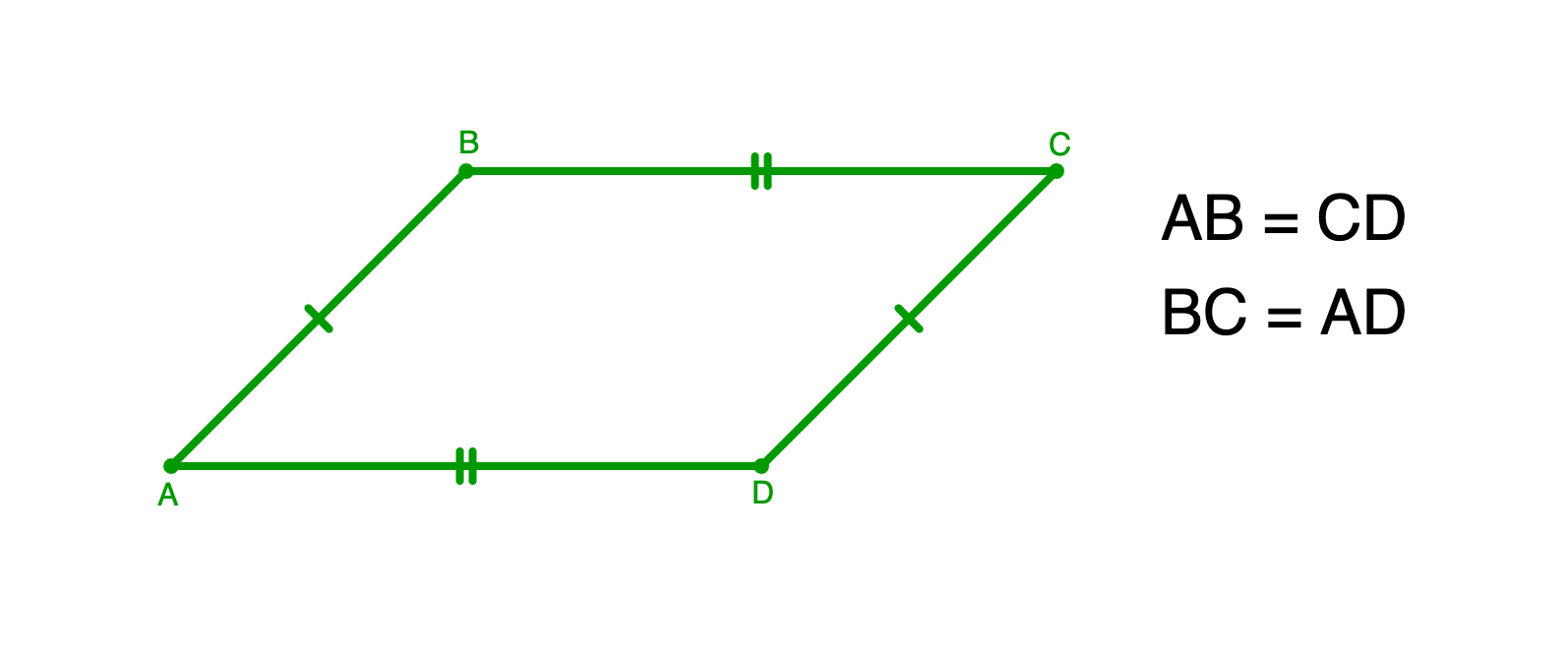 Если ABCD — параллелограмм, то AB = CD и BC = AD.