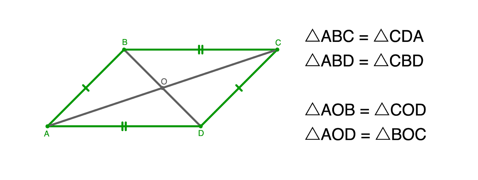 Если ABCD — параллелограмм, то △ABC = △CDA и △ABD = △CBD.
