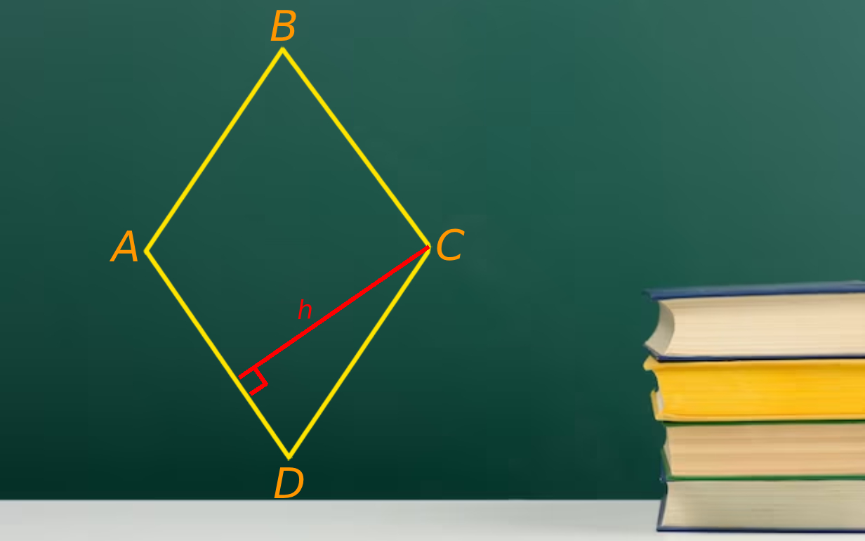 Чтобы найти площадь ромба по этой формуле, нужно перемножить сторону и высоту фигуры.