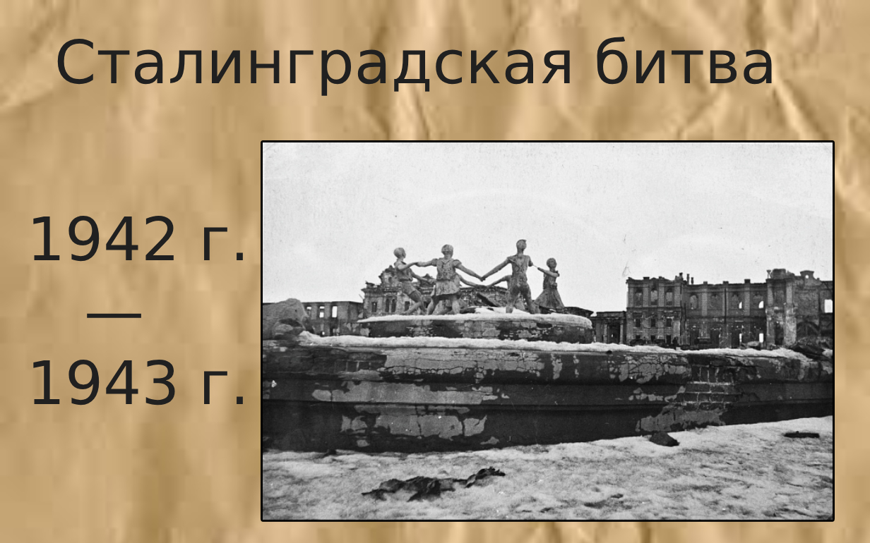 | Сталинградская битва длилась 200 дней и ночей | С 17 июля 1942 года по 2 февраля 1943 года |