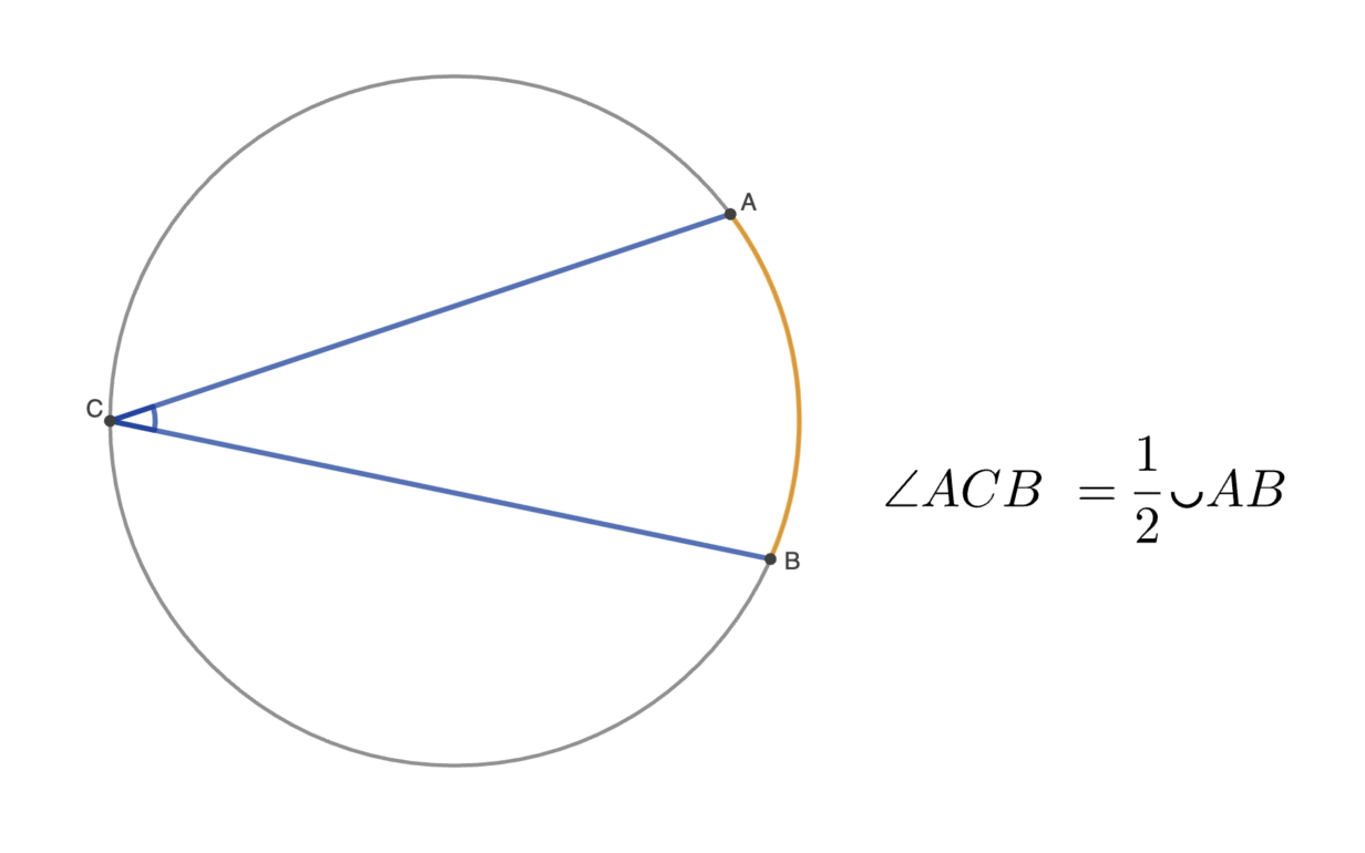 Вписанный угол равен половине градусной меры дуги, на которую он опирается.