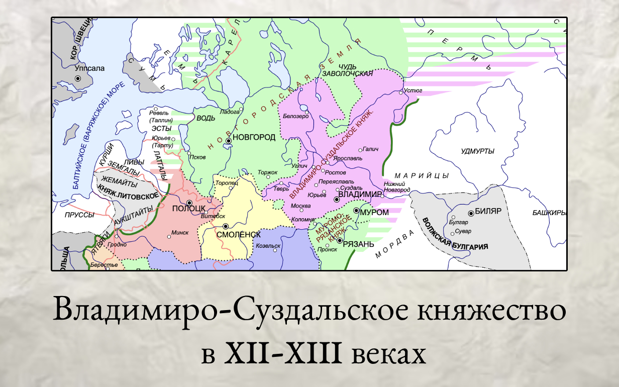 Великое княжество Владимирское выделилось из числа раздробленных территорий и постепенно стало ядром Русского государства. Именно его князьям удалось изменить государственный строй и систему управления. Расскажем, каким было Владимиро-Суздальское княжество в XII–XIII веках