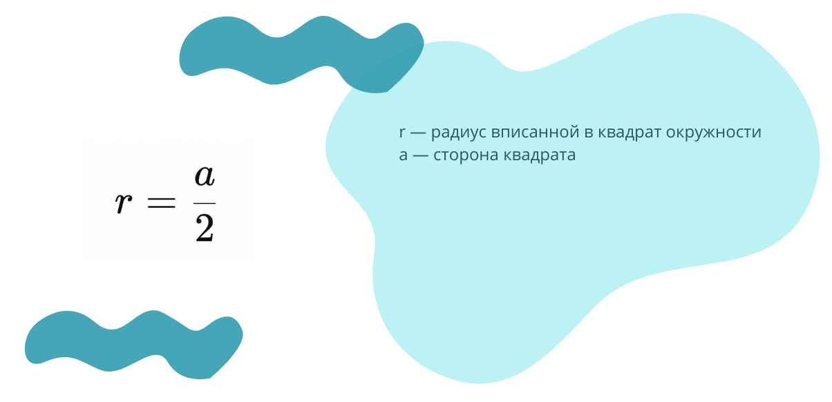 6. Если четырехугольник является квадратом, то радиус окружности, вписанной в него можно найти поделив его сторону на два: