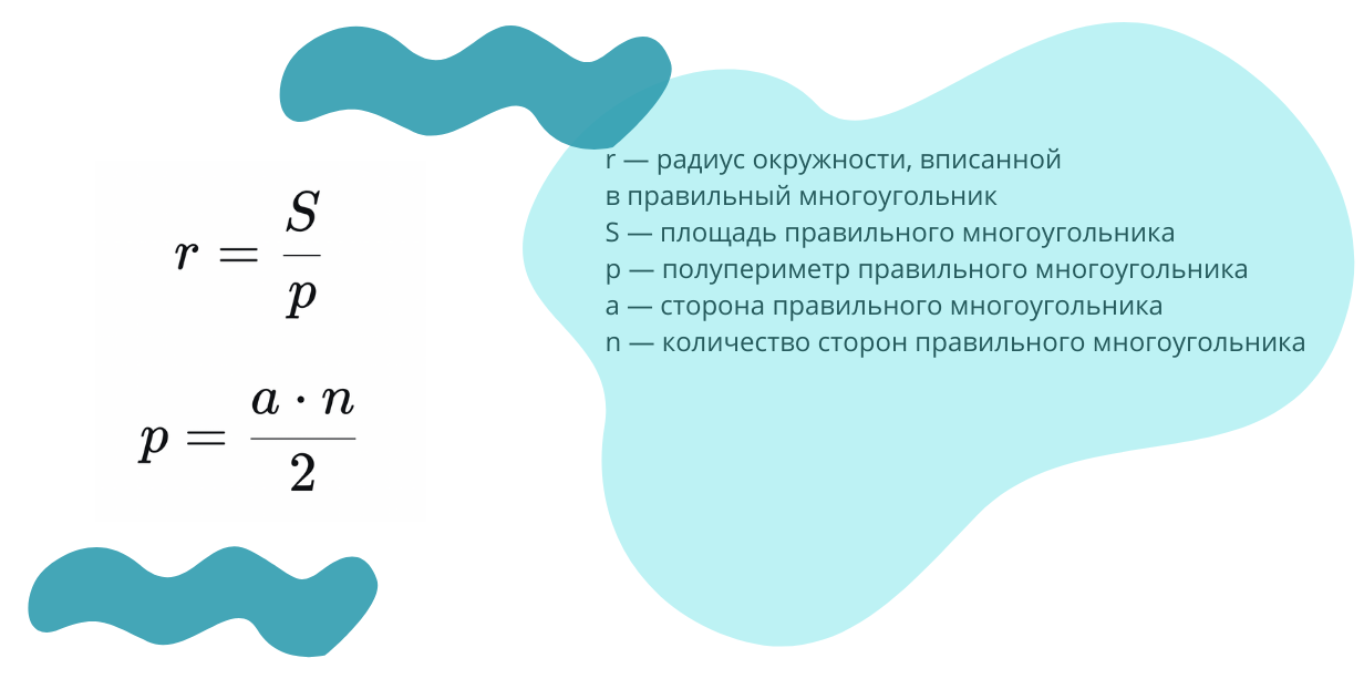 4. Радиус вписанной окружности в правильный многоугольник можно найти, разделив площадь многоугольника на его полупериметр: