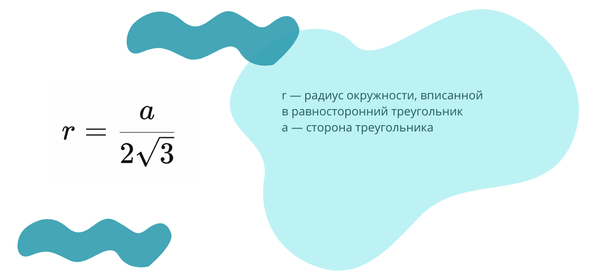 6. Радиус вписанной окружности в равносторонний треугольник можно найти через его сторону по формуле: