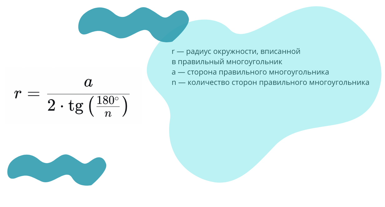5. Радиус вписанной окружности в правильный многоугольник можно найти через его сторону по формуле: