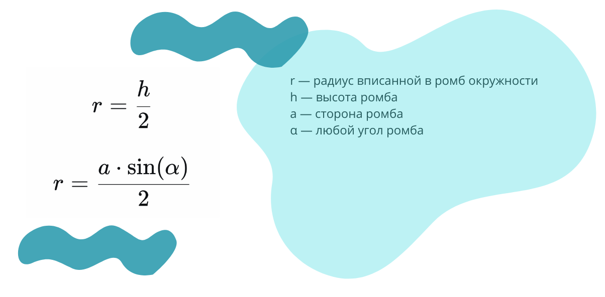 5. Если четырехугольник является ромбом, то радиус окружности, вписанной в него, можно найти, поделив его высоту на два или заменив высоту на произведение стороны на синус угла: