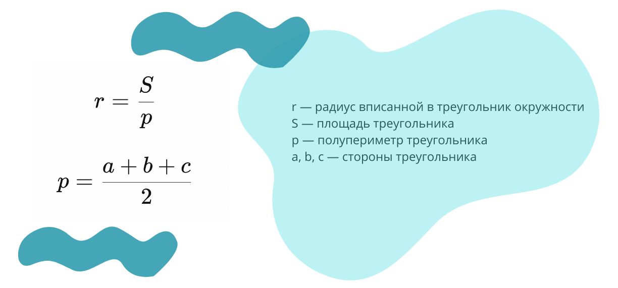 4. Радиус вписанной в треугольник окружности можно найти, поделив площадь треугольника на полупериметр: