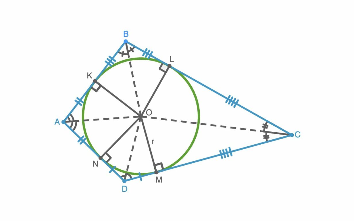 Помимо ключевого признака существования, вписанная окружность наделяет четырехугольник рядом других важных характеристик. Рассмотрим их.