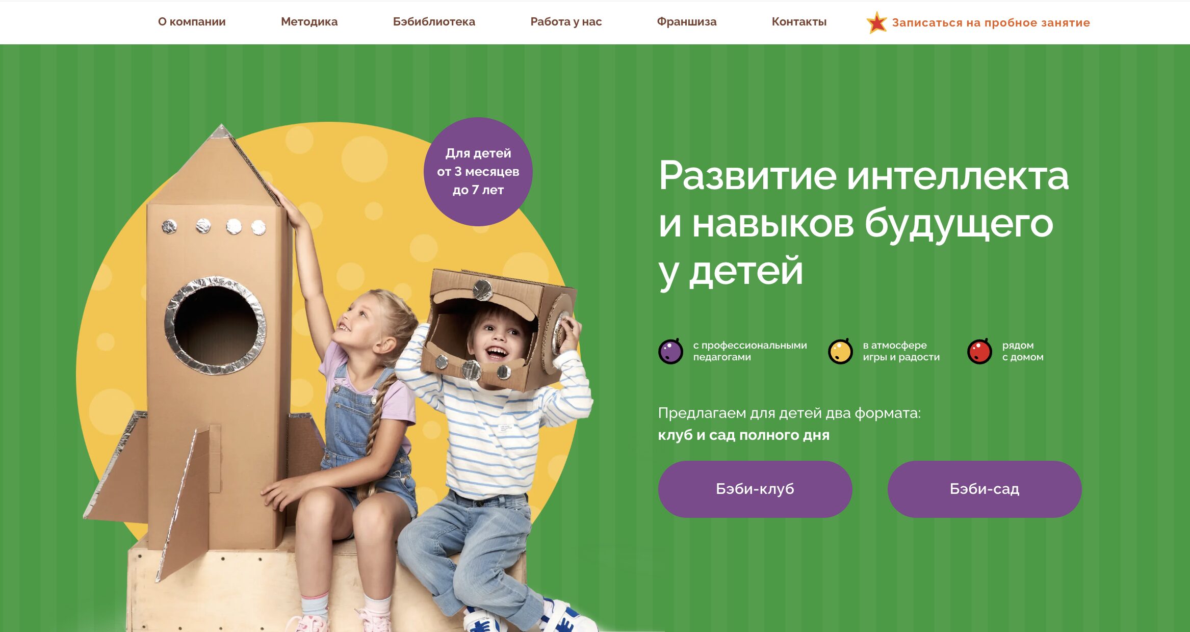 «Бэби клуб» работает с детьми от трех месяцев до семи лет. Здесь развивают сразу 10 видов интеллекта, что улучшает речь, координацию, логику, общение и творческое мышление, а занятия построены так, чтобы малыш осваивал несколько направлений одновременно и с удовольствием.