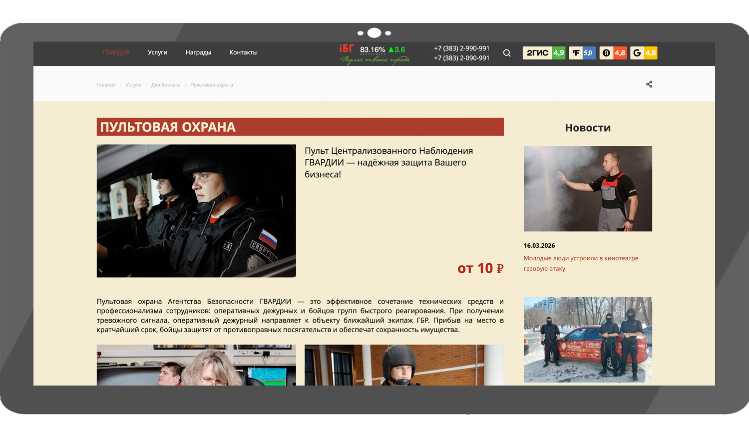 | Назначение | комплексная охрана (пультовая, техническая, физическая) |