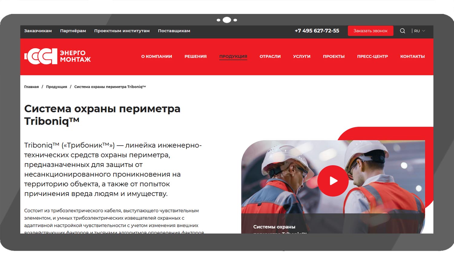 «Трибоник» — линейка систем охраны периметра на основе трибоэлектрического кабеля. При деформации провода, вызванной движением, внутри него возникает трение изолятора о проводники. Это создает электрический заряд, который и регистрируется извещателем. Таким образом фиксируются попытки нарушения границы территории. Система анализирует сигнал и благодаря адаптивной настройке «понимает» разницу между реальным нарушением и помехами от ветра, дождя и вибрации от транспорта.