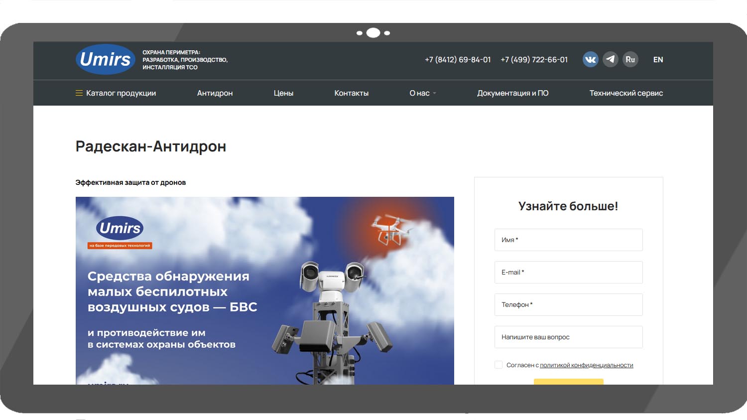 «Радескан-Антидрон» — комплекс обнаружения беспилотных летательных аппаратов (БПЛА). Система строится по модульному принципу, что позволяет подобрать конфигурацию под конкретные задачи. В состав комплекса могут входить: