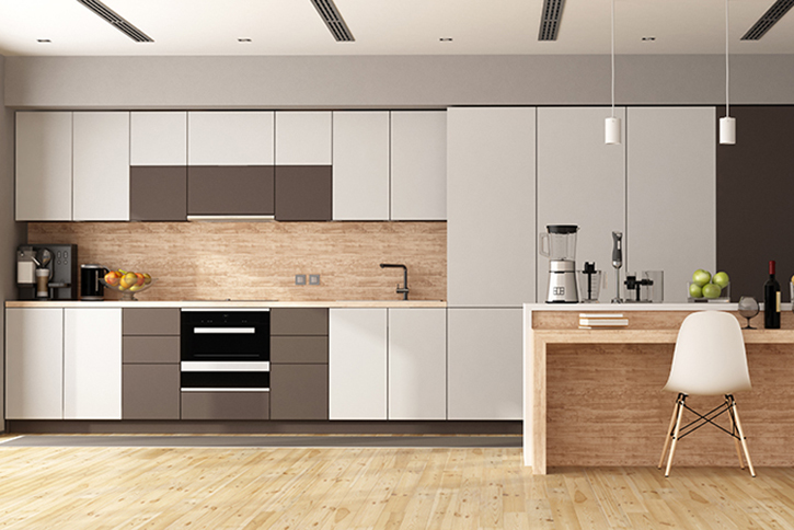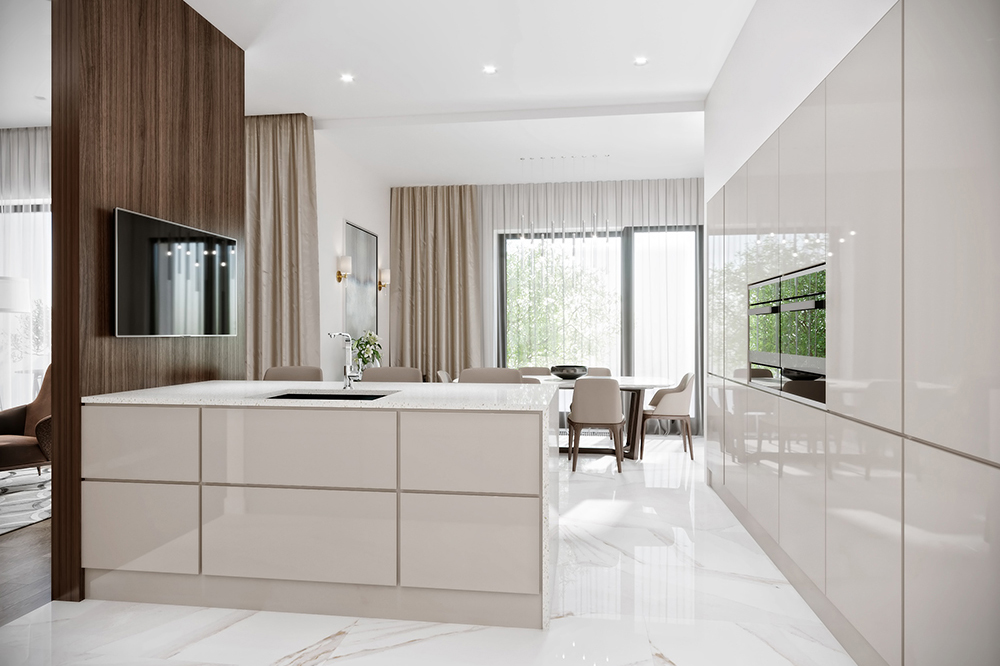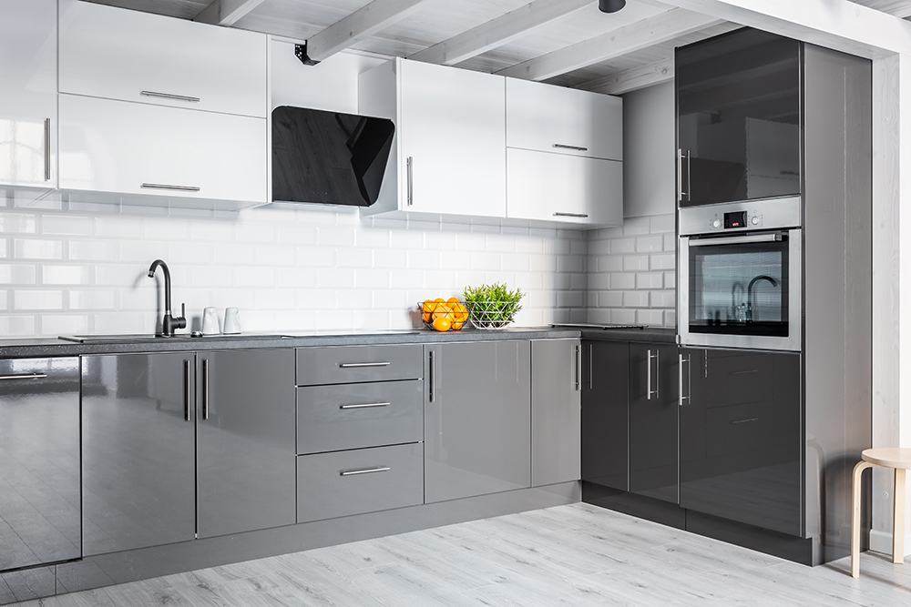 Впрочем, есть здесь и свои «но». На глянце хорошо заметны отпечатки пальцев и другие загрязнения, а значит такая кухня потребует более тщательного ухода за собой. Однако он не займет много времени — глянец легко очищать с помощью спрея для стекол и мягкой тряпочки.