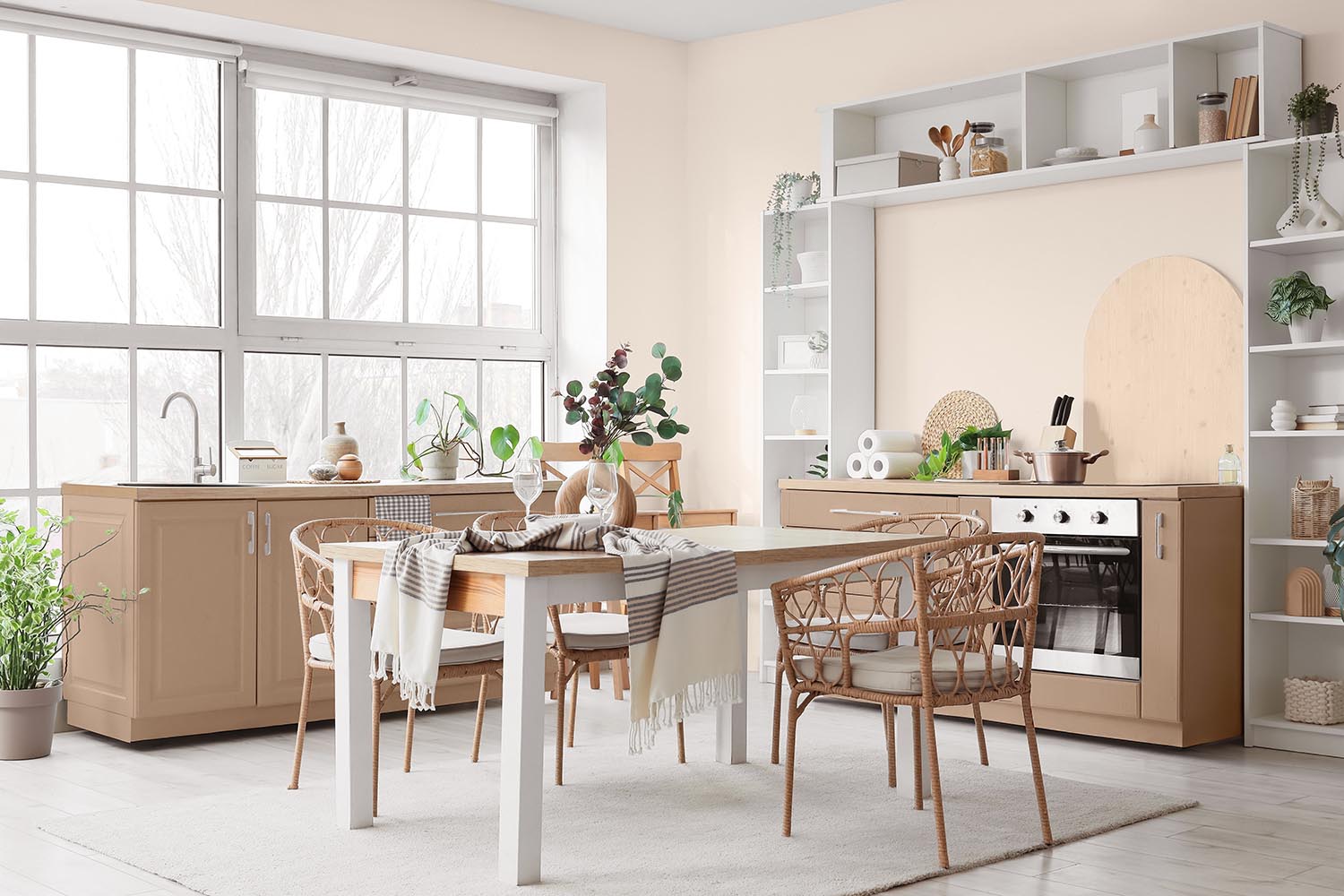 Бежевый цвет только кажется однообразным, на самом деле он крайне многолик. Он может быть светлым и темным, холодным и теплым, уютным и строгим, мягким и суровым. В зависимости от того, какой вы хотите видеть будущую кухню, вы можете выбрать из множества оттенков. Все они прекрасно сочетаются с белым цветом, и эта пара — словно чистый холст, картину на котором легко нарисовать широкими мазками — добавить элементы декора, текстиль, керамику, растения.