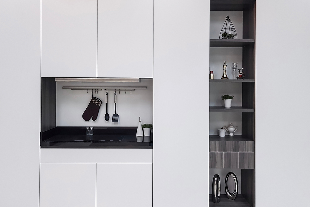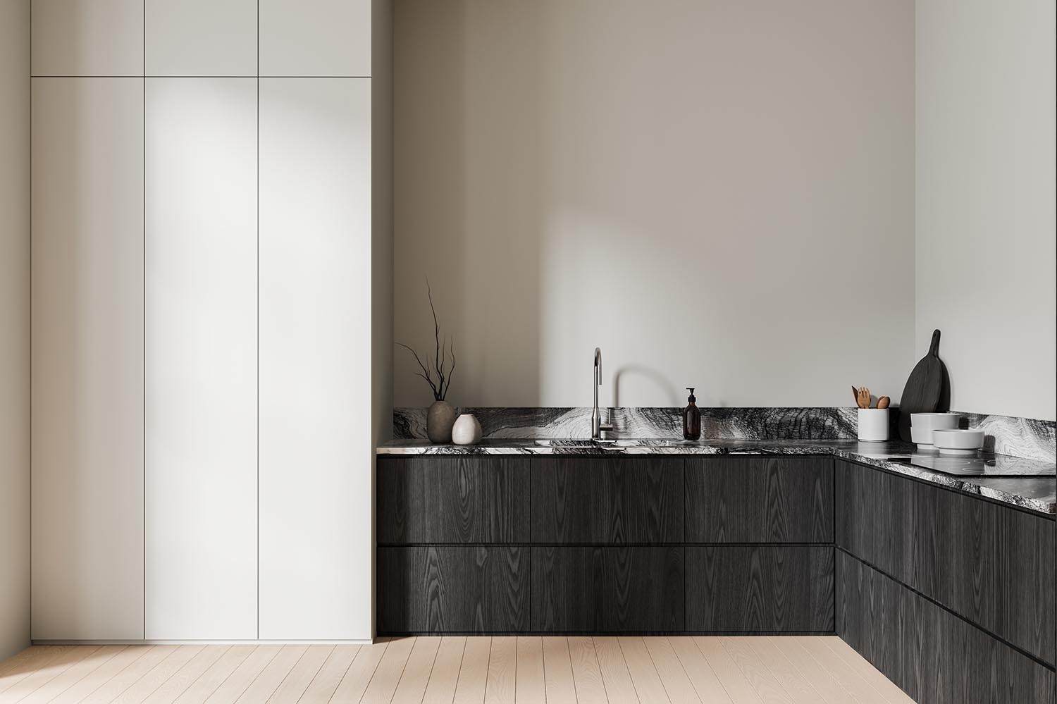 Как и в любом другом деле, здесь главное — не переборщить. Будьте осторожны с декором и пропорциями — если кухня небольшая, сделайте доминирующим белый цвет, который поможет визуально увеличить пространство. Черный в этом случае выступит акцентным. Хорошее решение — белые фасады и черные столешницы или черный фартук.