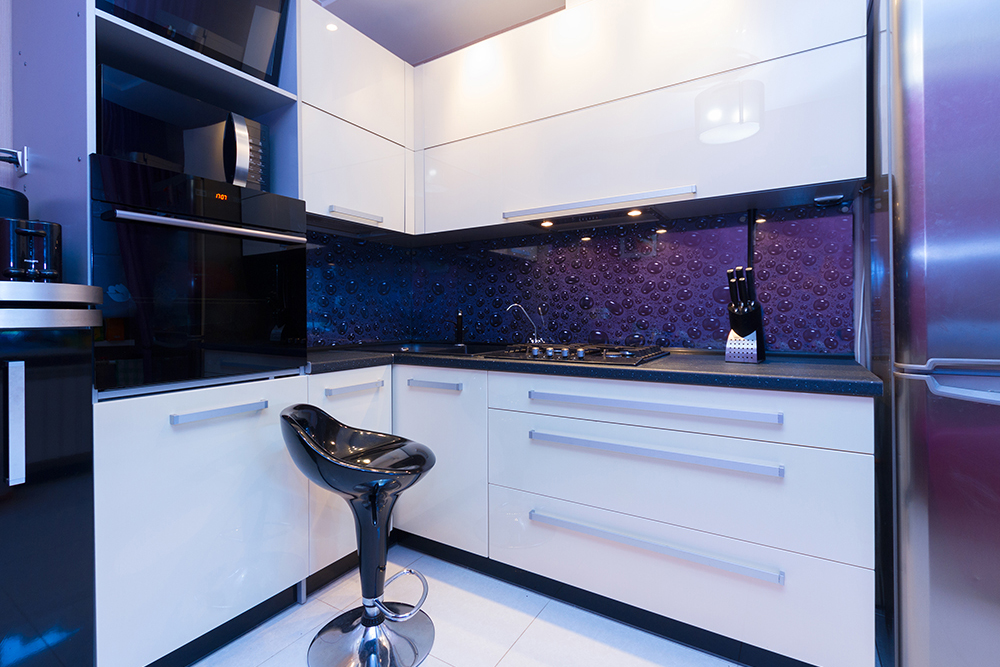 Глянцевые белые фасады станут прекрасным решением для небольшой кухни. Они отражают солнечный свет и создают атмосферу легкости и присутствия воздуха. Это уже классика — белую глянцевую кухню вы найдете в каждом мебельном магазине. Причем в любом стиле: глянец идеально впишется не только в футуристические дизайны, как может показаться на первый взгляд, но и прекрасно уживется с классическими линиями.