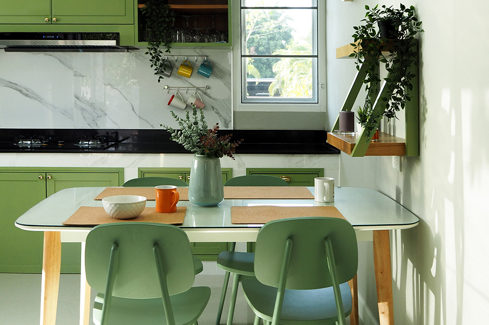 Какое сочетание цветов в зеленой кухне считается самым удачным?