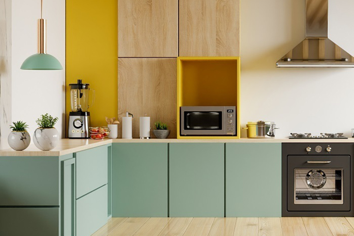 Самый беспроигрышный вариант для кухни – это приятные приглушенные оттенки желтого и зеленого. Один цвет может присутствовать в интерьере в качестве базы, а второй, как акцент и дополнение. А чтобы придать пространству уют и благородство, можно добавить к зеленому и желтому натуральную текстуру дерева.