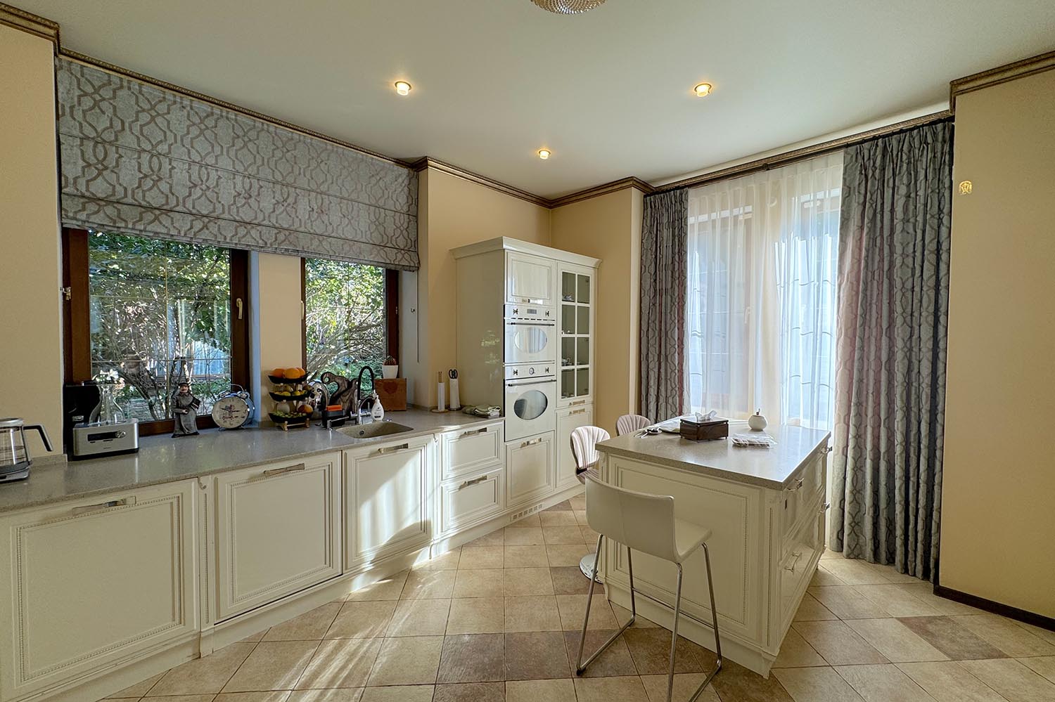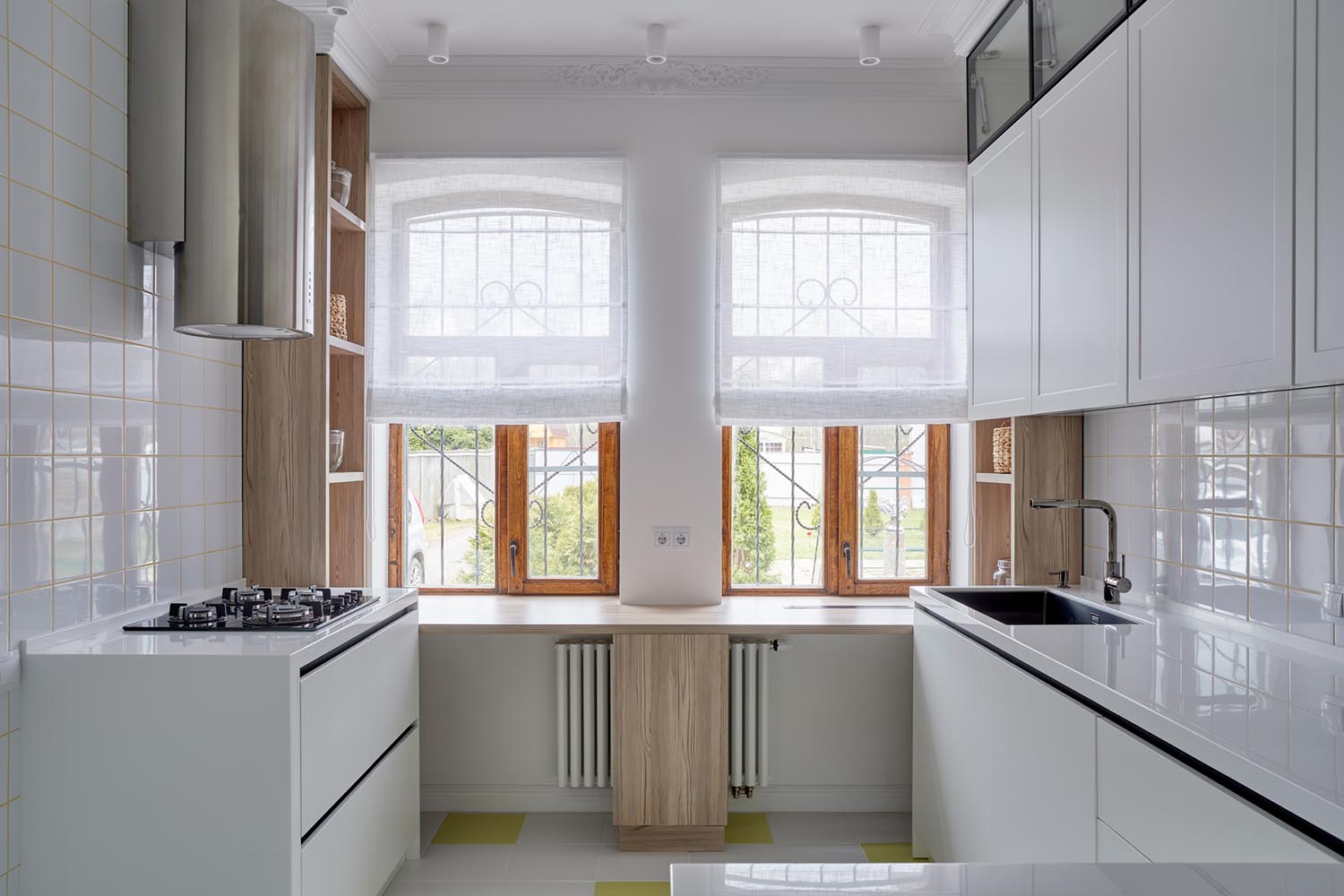- До подоконника — подходит для кухни, детской, помещений с глубокими подоконниками. Но лучше опустить полотно на 10-15 см ниже подоконника — так выглядит аккуратнее.