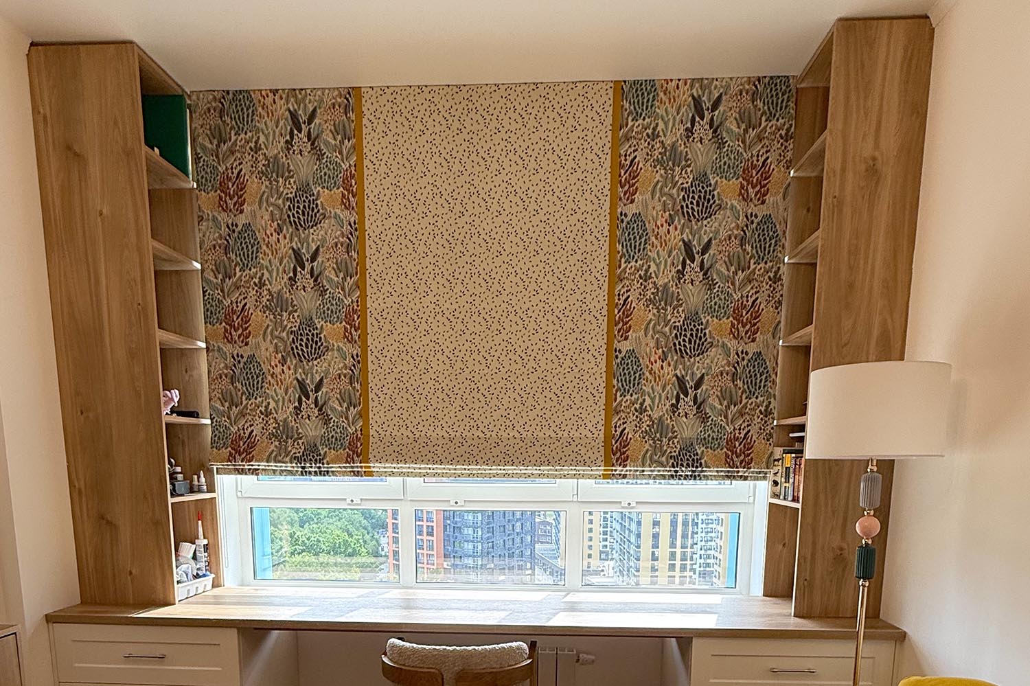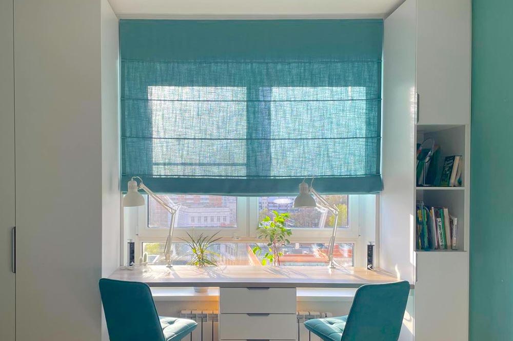 Считается, что насыщенные цвета — красный, желтый, синий — стимулируют мозговую активность. Ткань по цвету не должна настраивать на отдых или вызывать сонливость. С практической стороны предпочтительны акриловые, полиэстеровые ткани или смесовые материалы (хлопок плюс синтетика). Они устойчивы к выцветанию, просты в стирке и сохраняют первоначальный вид. Отличный вариант — рулонные шторы, предельно простые в уходе.