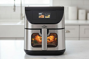 Многофункциональный аэрогриль пользуется большим спросом у покупателей. Он заменяет сразу 10 бытовых приборов. Основные из них: фритюрница, микроволновка, гриль, йогуртница и шашлычница. Равномерная циркуляция горячего воздуха позволяет жарить и запекать блюда с минимальным добавлением масла, что положительно сказывается на полезности готового блюда. 12 автоматических программ позволят приготовить пиццу, бекон, картофель фри, шашлык или куриные крылья. Под каждый отдельный режим установлена оптимальная температура и время приготовления.