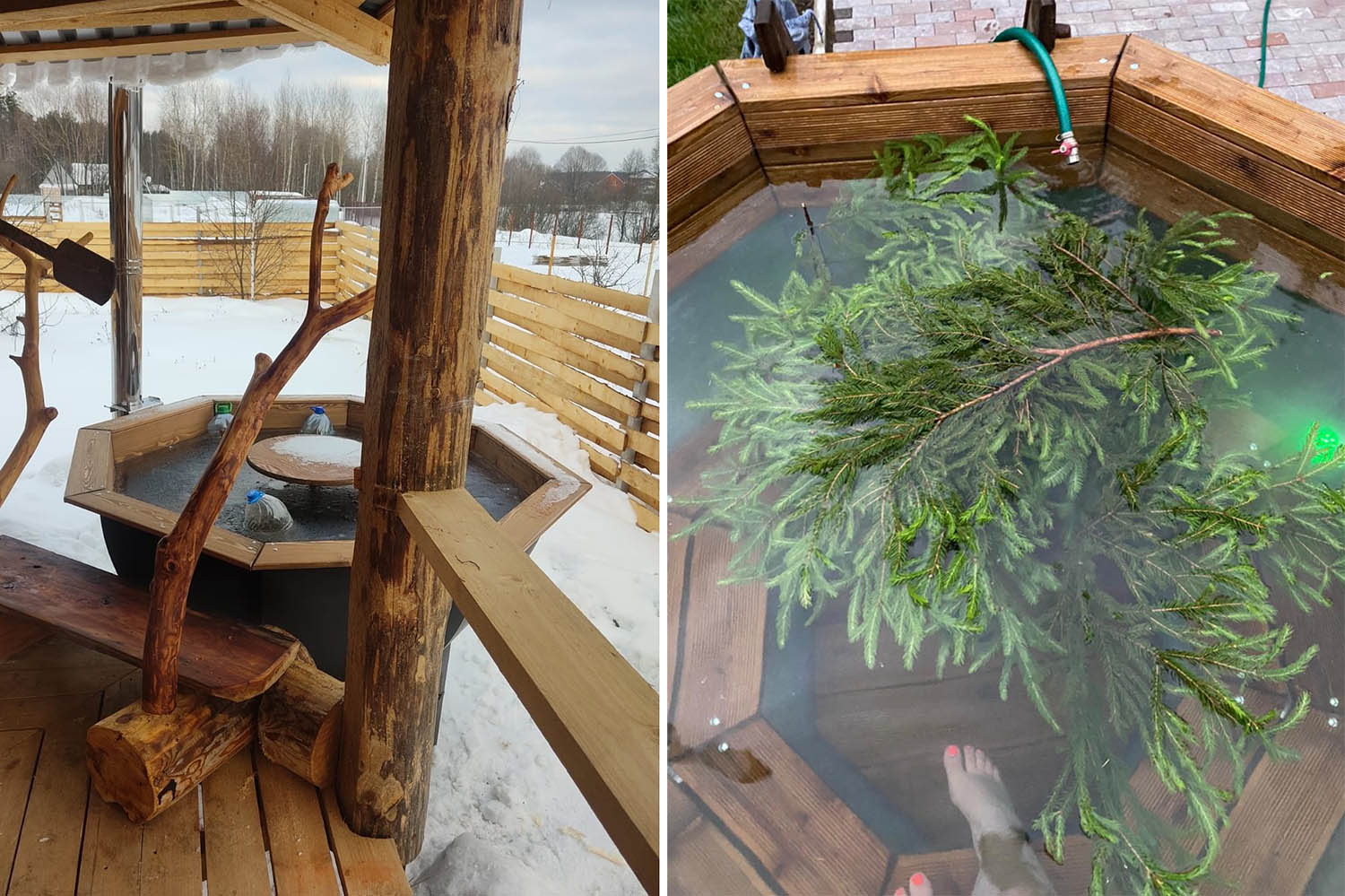 Деревянный чан с 10 гранями от компании Bent Wood изготовлен из прочной лиственницы и предназначен для круглогодичного использования. Диаметр составляет 210 см, высота — 120 см. Такие размеры позволяют комфортно разместиться нескольким взрослым, а за счет относительно невысоких бортов в чан легко заходить детям. Дерево обработано защитными средствами от влаги и перепадов температуры.