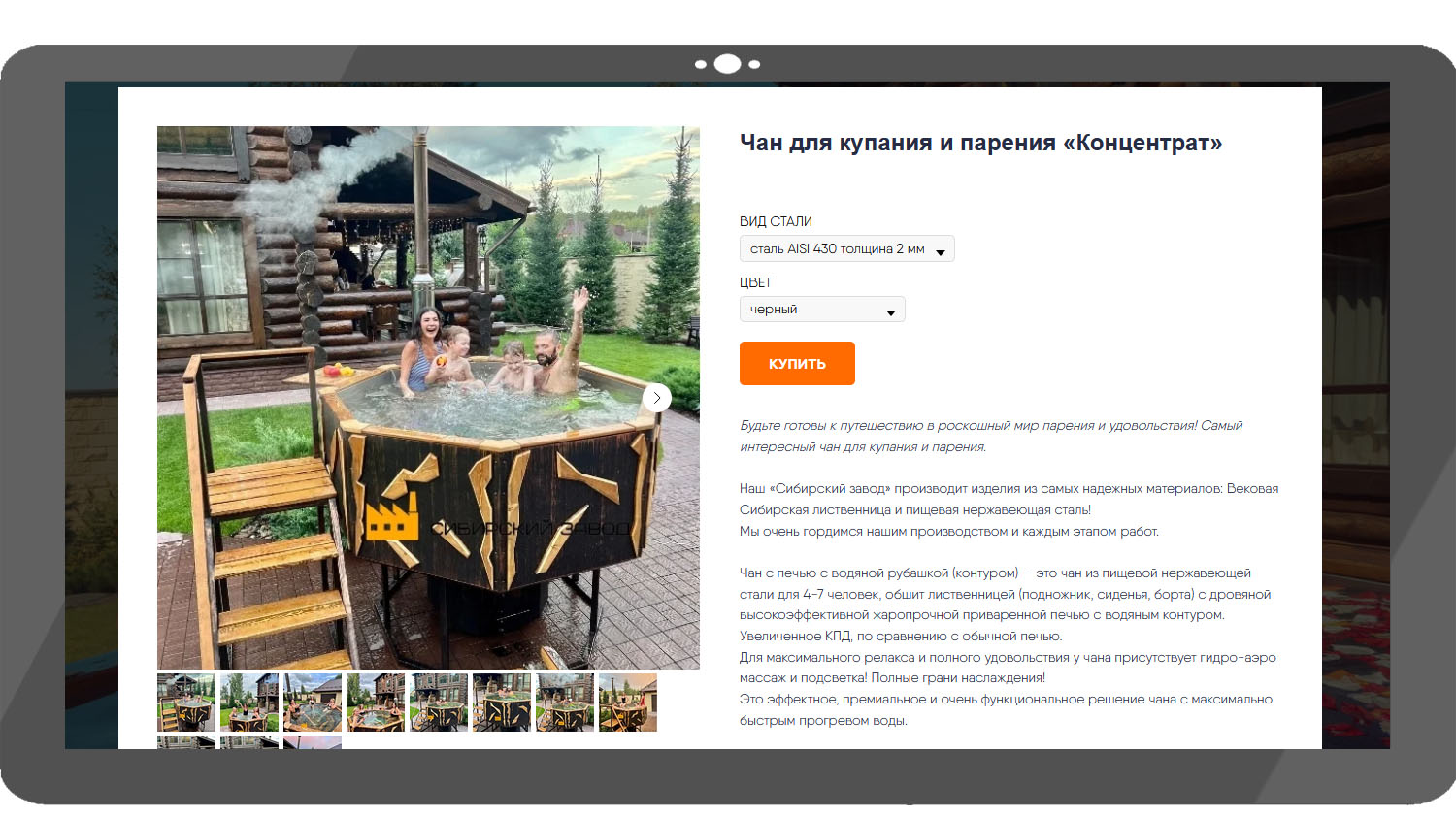 Каждый чан продуман до мелочей: удобная посадка под углом 67°, широкое дно, качественные сварные швы и безопасная дымоходная система. Компания предлагает индивидуальное изготовление, включая подбор отделки, покраску по RAL и модификацию конструкции под нужды клиента. Отдельное направление — чаны для бизнеса. Более 400 моделей уже установлены на кемпингах и базах отдыха по всей России.