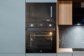 Если на кухне отсутствует отдельная микроволновка, то имеет смысл выбрать духовой шкаф с СВЧ (расшифровывается как сверхвысокочастотное излучение). Он освободит часть полезного пространства на кухне и позволит разогреть пищу за 3-4 минуты (как полноценная микроволновка).