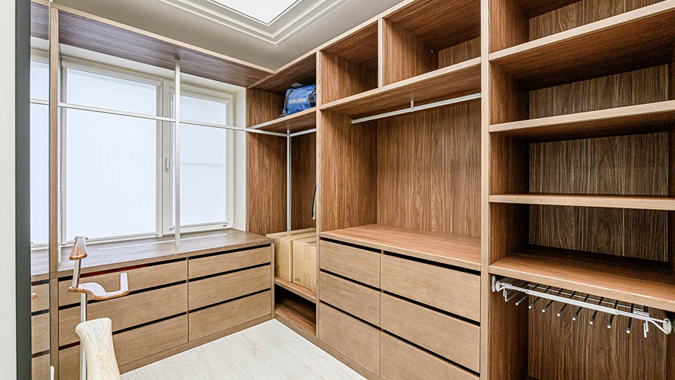 Определите, где гардеробная будет размещаться: в отдельной комнате, нише, кладовой или другом месте. В зависимости от планировки подойдет линейная, угловая, П-образная или параллельная система.