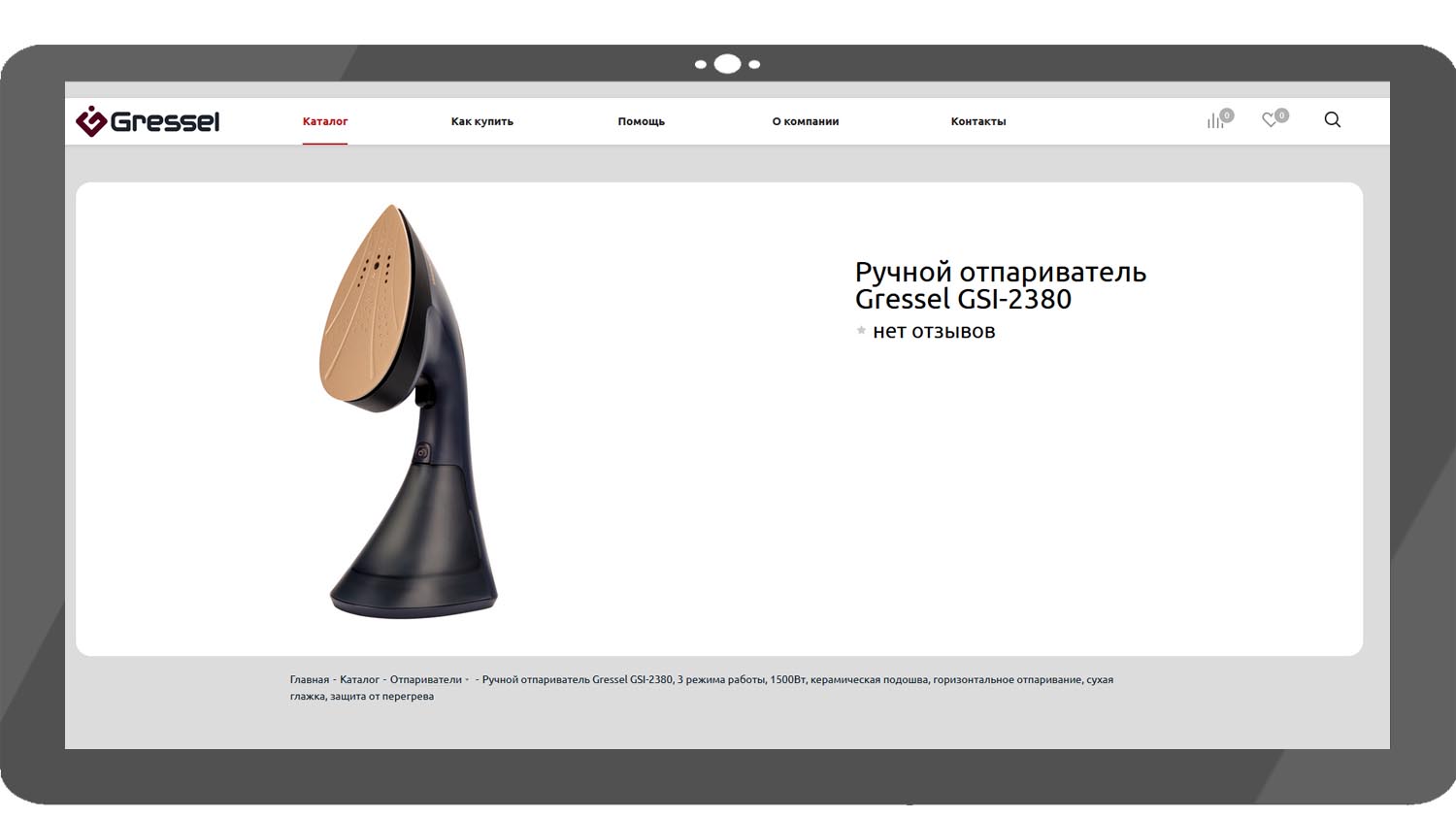 Gressel GSI-2380 автоматически отключается при перегреве. В набор включены мерный стакан, небольшой бак для воды емкостью 0,16 л, инструкция. Однако в комплекте нет дополнительных насадок и терморукавицы. Длина шнура питания составляет 1,9 м.
