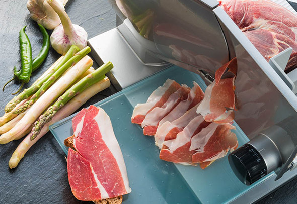 Модель оснащена цилиндрической воронкой диаметром 58 мм для быстрой загрузки продуктов и полукруглой (104 см2) — для крупных продуктов, таких как капуста, томаты, сельдерей. Диски из нержавеющей стали с высокой точностью заточки позволяют получить идеально ровные ломтики и кубики.