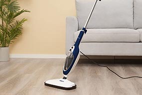 Пар температурой до 110 °C эффективно очищает любые загрязнения, уничтожает до 99,9% бактерий и вирусов. Резервуар устройства рассчитан на 300 мл, а шнур длиной 4,3 м позволяет перемещаться по комнате без постоянной смены розеток. Хранить пароочиститель очень удобно — просто оставьте пароочиститель в вертикальном положении, благодаря этому прибор занимает мало места.
