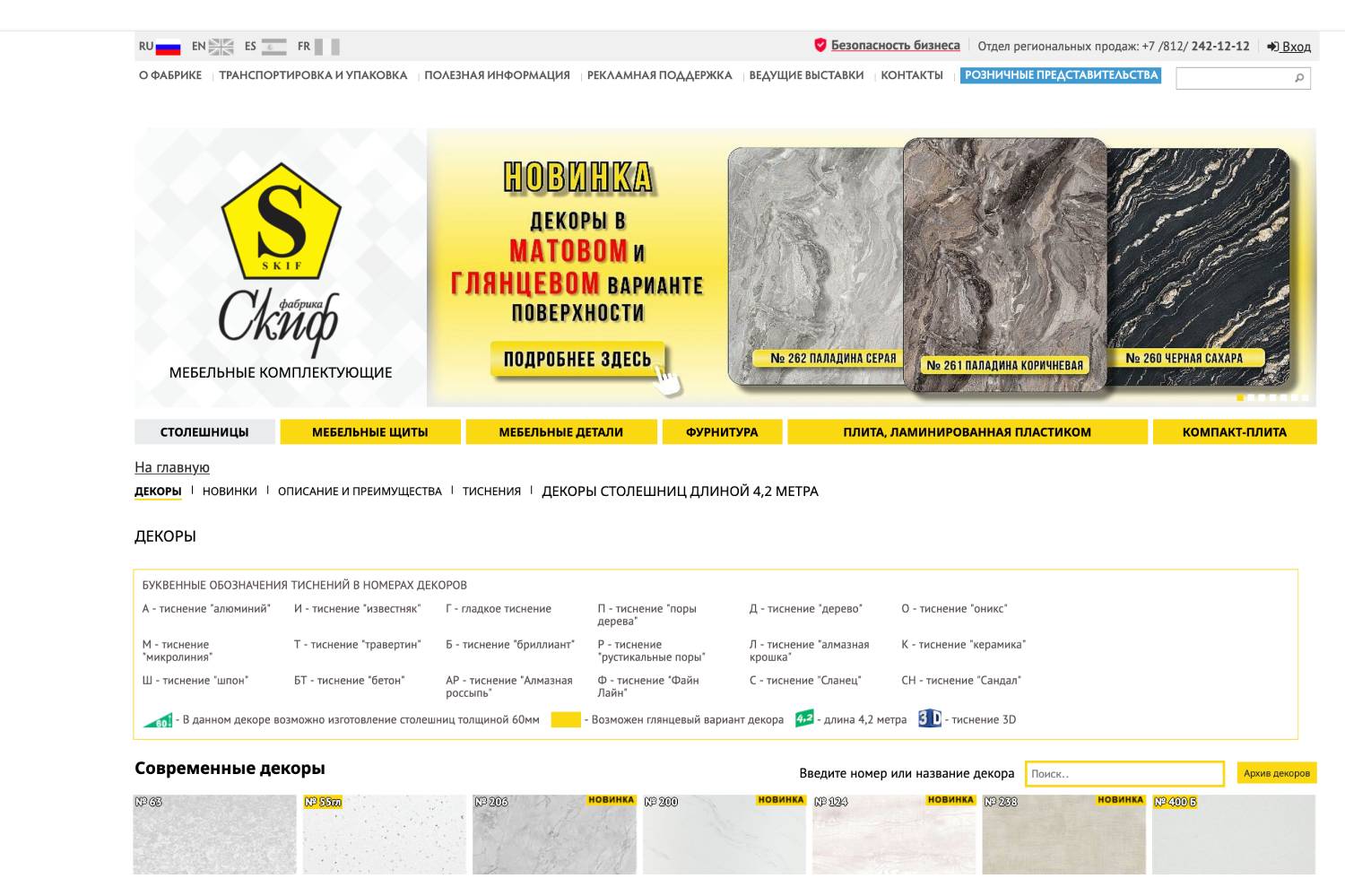 Фабрика «Скиф» была основана в 1997 году в Ленинградской области. Компания специализируется на серийном выпуске столешниц, а также продаже комплектующих для мебели и строительства. Располагает собственными цехами и складами общей площадью 20 000 м². Готовая продукция хранится в Санкт-Петербурге, Москве, Минске.