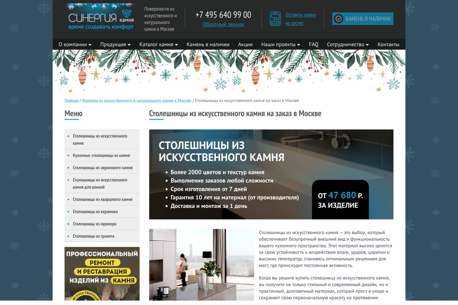 «Синергия камня» основана в 2014 году в Москве. Специализируются на обработке натурального и искусственного камня. Компания выполняет комплексную отделку различных помещений: от квартир и загородных домов до крупных коммерческих, общественных и инфраструктурных объектов.