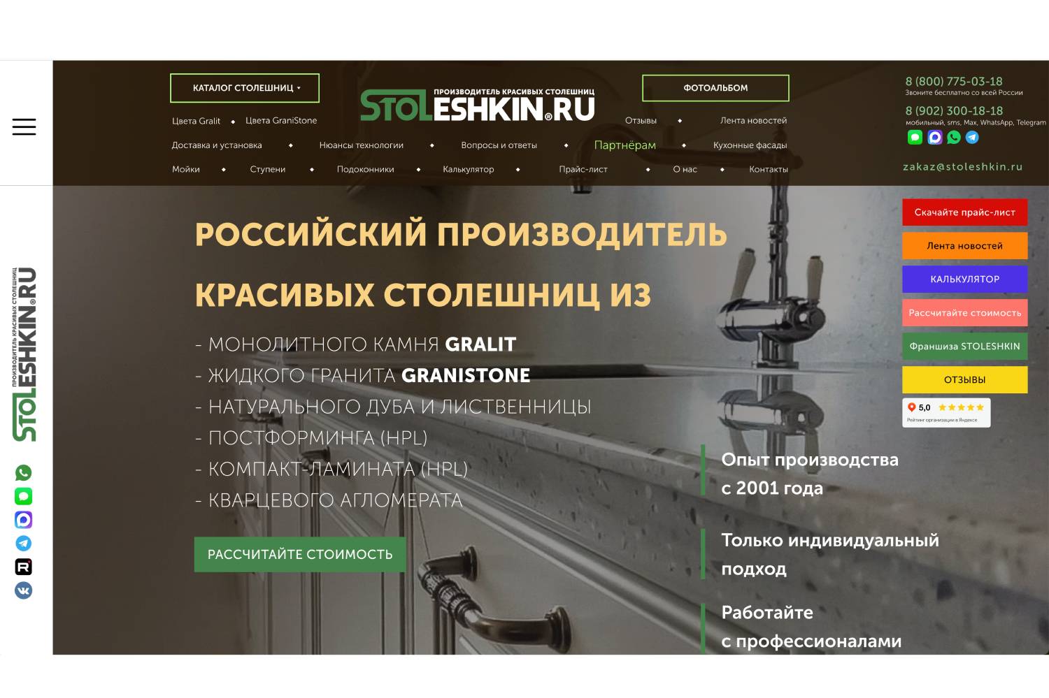 Производство компании оснащено оборудованием из Германии, Италии и США, что вкупе с качественными материалами позволяет изготавливать прочные и эстетичные столешницы и мебель. Клиентам доступна услуга замера помещения, а выезд штатного дизайнера для консультации — бесплатный. Оплатить заказ можно любым удобным способом, в том числе оформив рассрочку.