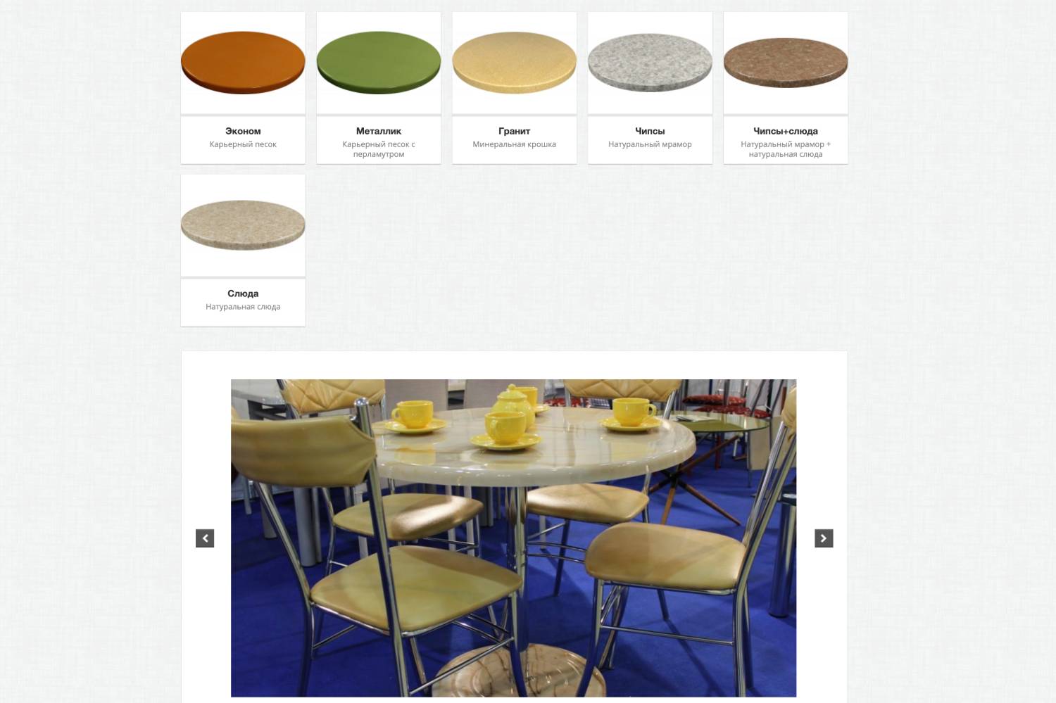 В каталоге представлены столешницы из монолитного камня, жидкого гранита, кварцевого агломерата, натурального дуба и лиственницы, а также модели из постформинга и компакт-ламината HPL. Дополнительно компания предлагает кухонные фасады, мойки, ступени и подоконники.